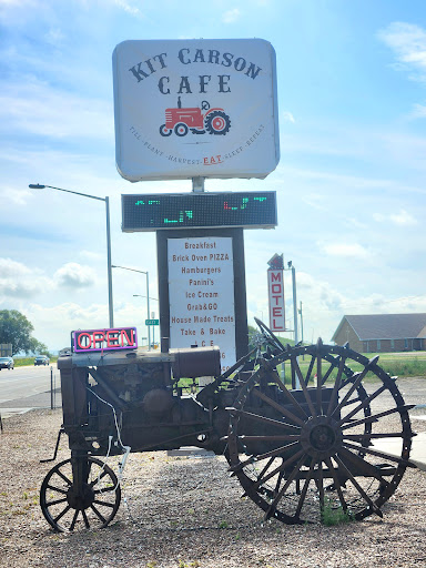 Read moreWe stumbled upon Kit Carson Cafe during our road trip from Denver, Colorado to Dallas, Texas all thanks to a Tesla Supercharger stop in this tiny town. What a delightful surprise! This cozy roadside café serves up some seriously good food. We tried their brick oven pizza and it was fantastic fresh ingredients, perfect crust, and loaded with flavor. The vibe is charmingly rustic with small-town hospitality. Loved the vintage tractor outside and the quirky signage that says: “Till • Plant • Harvest • Eat • Sleep • Repeat.” If you’re passing through Kit Carson, CO especially in an EV make sure to stop by. Great food, clean restrooms, and friendly faces in the most unexpected place. One of the happiest finds...