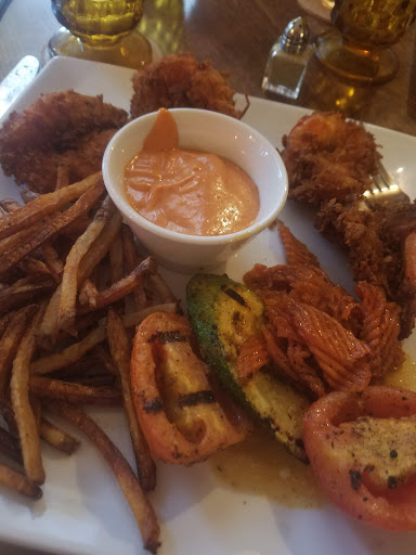 The entrees we ordered ranged from an 8oz. Sirloin, ribeye, rack of lamb, filet, smoked trifecta ( brisket, filet tips and sweet sausage), seafood scampi and grilled vegetables over rice.