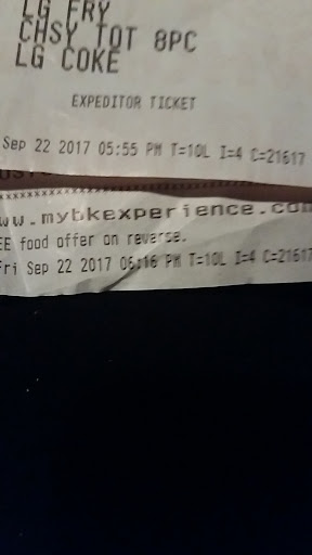 I went to this burger king last night and I was pretty annoyed by the girl on the drive- thru speaker. I was trying to ask a question after she had rung up my order (and i wasn't even done ordering) and she told me it was $4.09.,and then answered it as $4.09. I'm like, but wait i want... $4.09. She didn't even let me add to my order. FAST FORWARD TO TODAY!! My boyfriend and i decided to dine in at this same Burger King just an hour ago. And, I'm very glad we did. The breakfast menu was not quite over yet, and i asked if me and my boyfriend could order from the regular menu. The lady working their said Yes, just give us a couple extra minutes. Then we ordered and ate. The food was fresh, hot, and tasted as good as fast gets, lol! It was the friendliness of the staff, from mainly whom i think was the manager on site. My man and i both ate and we are full, both of us, lol. And, all it came to was $6.25 😀😁👍🍔🍔🍟🍵and french toast sticks 3 for...