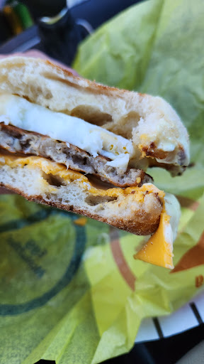 I waited maybe 5 minutes in these booths where im sorry im 230 and I could barely slide my behind through the seats. So if you weigh more you might have to pick the open section in the next compartment. Now once I open my sandwich I already knew they messed up and forgot my egg so I had to go up and tell the manager the problem and he made it within 2 minutes but didn't say anything like I'm sorry. I'm sorry goes a very long way in rectifying the situation but after I had almost completed my meal the manager came over and personally said I'm sorry and gave me a gold card worth a free combo meal...