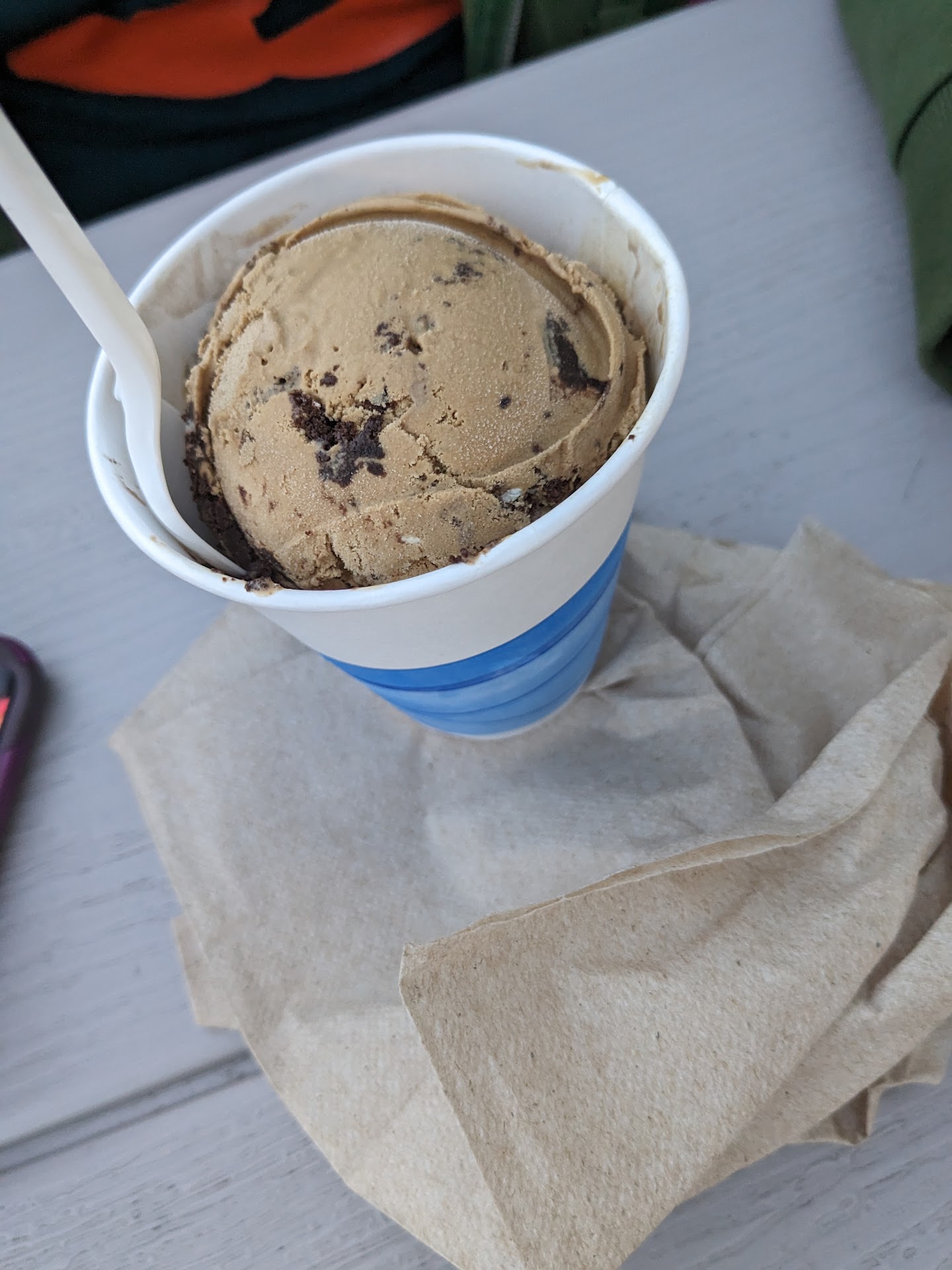 We were here on Sunday which was at 90 plus degree day. Perfect day to buy ice cream though I recommend getting it in a cup otherwise it's going to run all over your hands because of those hot days. Decent quality ice cream on the pistachio had plenty of pistachio nuts but if I were to give them some advice cut back at the artificial coloring guys! Pistachio ice cream only has a very very faint and I mean faint greenish color not this bright green that I see that a lot of places seem to use just use all natural ingredients and call it a day. Flavors are very good the Cherry ice cream definitely had a lot of sweet bing cherries and not those disgusting maraschino cherries. Prices were pretty reasonable I would say about average I wouldn't say they were high priced even though you're in a tourist area I'd say they were they were what I would expect to pay for ice cream portion sizes were large. For the glutton in me I was very happy!there are a number of picnic tables outside so you can sit at one of those I would say probably give you guys a little advice send somebody out about maybe once every half an hour with a couple of wet towels just to wipe off the melted ice cream I kind of did some of that at my table so it would be messy for the next people just...