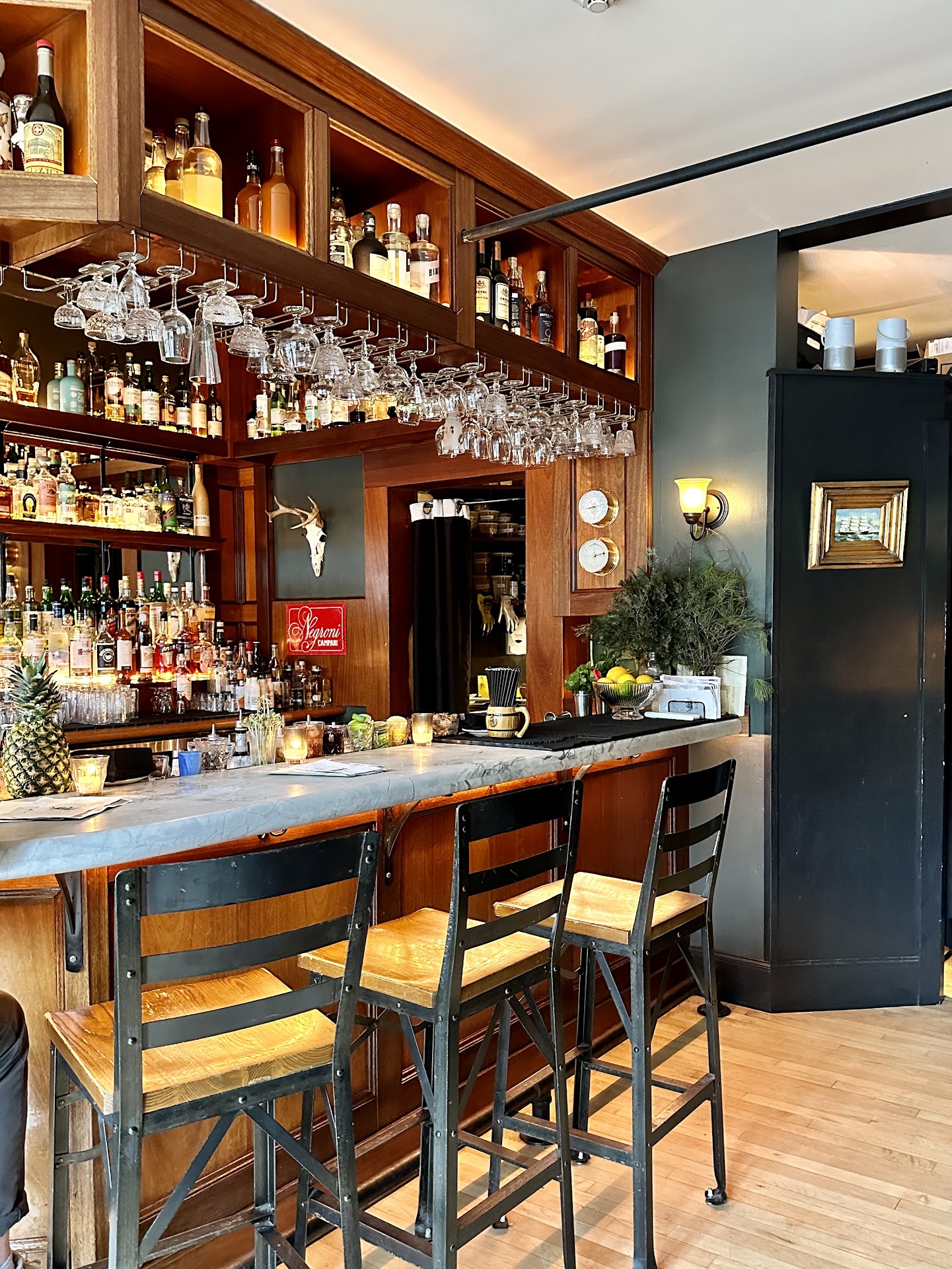 Scam. I found the Wallingford on here one day, so my husband and I went over on a whim. We love little hole in wall craft cocktail bars. It literally is a hole in the wall, with maybe 8 bar seats, and a few indoor tables (couple more outside, too). The employees were mega nice and it has the look of a craft bar, warm woods and lightening, but it ended up being a hipster sham. We found out a little too late that they don’t craft their cocktails by hand to order at all, rather they are batch made. What’s worse is, before knowing that, I asked to make a minor modification to a drink on the menu, simply switching the brand of vodka, to which the bartender replied that, not only was he unable to do so because it was made in big batches, but that he didn’t even know the measurements to make it at all. I’m sorry but if I’m paying $20 for a “craft cocktail” I expect it to be made by a bartender who knows how, and for it to be made fresh in front of me. The whole place lost its sizzle after that. You want to sell batch made cocktails? Great! But don’t fluff up the price and make a big show of it. Over $125 for 6 drinks and a saucer of spicy nuts (which were delicious). That’s too much for simply pouring from a jug.