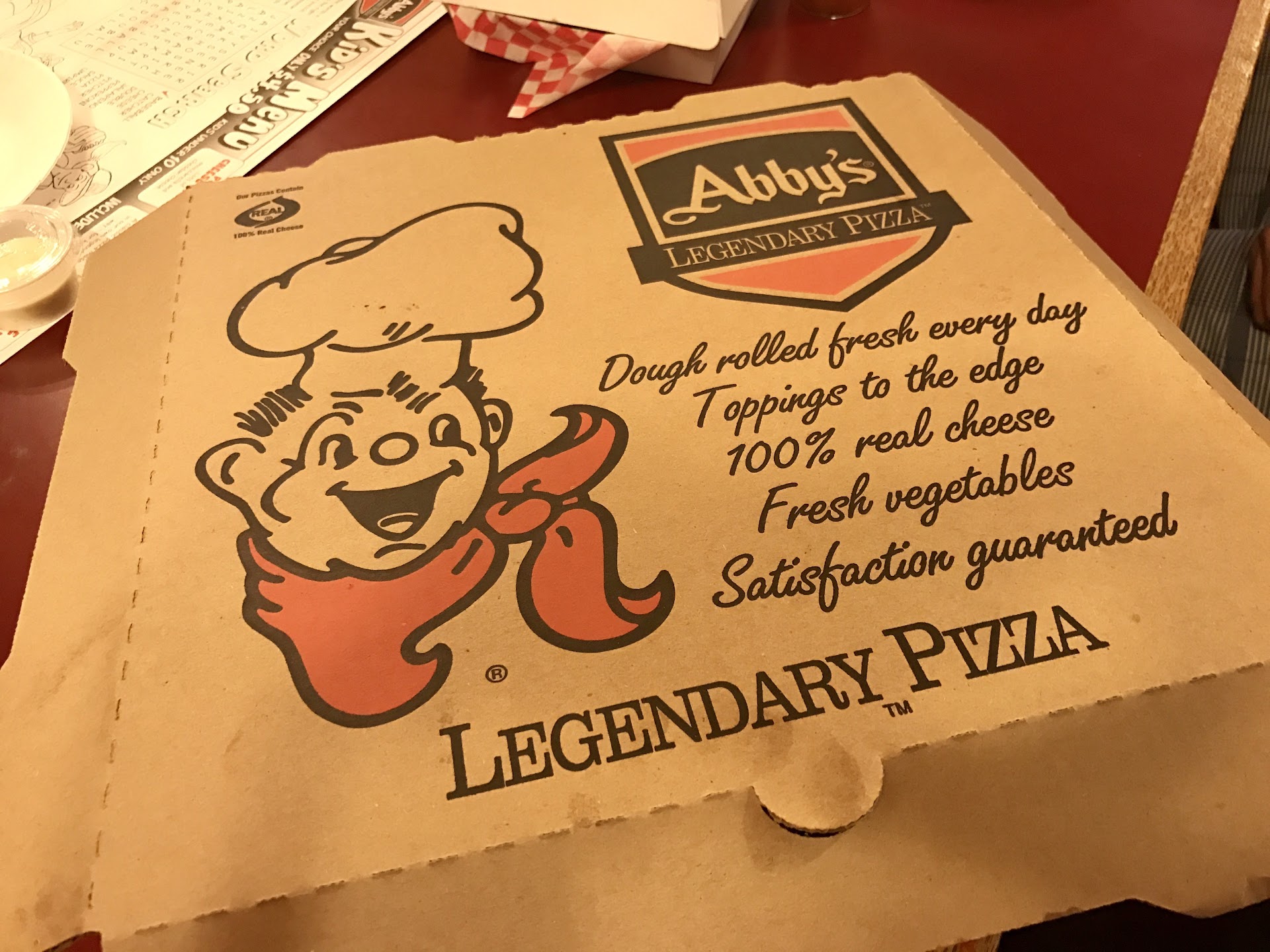 Im not trying to bash this place but i just wanted to say this to let everyone be aware of the issues we had with this location. Staff have terrible communication skills. I had made an order for delivery and asked before i made my order if the person doing the delivery could bring change for $100, i then had the staff member confirm this request after i told them my order. They said the wait would be 45 minutes but i waited patiently for over a hour just for them to bring the food but not have any change. The person had to go back and get change so i called and very nicely let them know that my food is most likely going to be cold, i also let them know about the staffs communication skills so they had offered me a card for a free pizza, we said great thank you! Delivery person returned and i politely asked for the card that was for the free pizza just for them to say "i have no idea, they havent been telling me any of this" i said thats fine have a good night. I call back Abbys to speak to the manager and explained the issues i had prior to even receiving the food and she was extremely rude!!! Talk about terrible customer service too.... I was being very nice and i wasnt trying to get anything free out of it although it was nice for them to offer at LEAST. After she gave me some major attitude i said thank you but this is all a little ridiculous and the manager hung up on me!!! Food was disgusting to be honest boneless wings were super undone/soggy, the only dessert they had was extremely hard bread with the tiniest bit of frosting on it... First and last ill ever spend any type of money or time at this place.. Pizza was definitely not legendary either.... Thank you for reading my feedback and if you do decide to order from here i hope its much more pleasant than what i had...