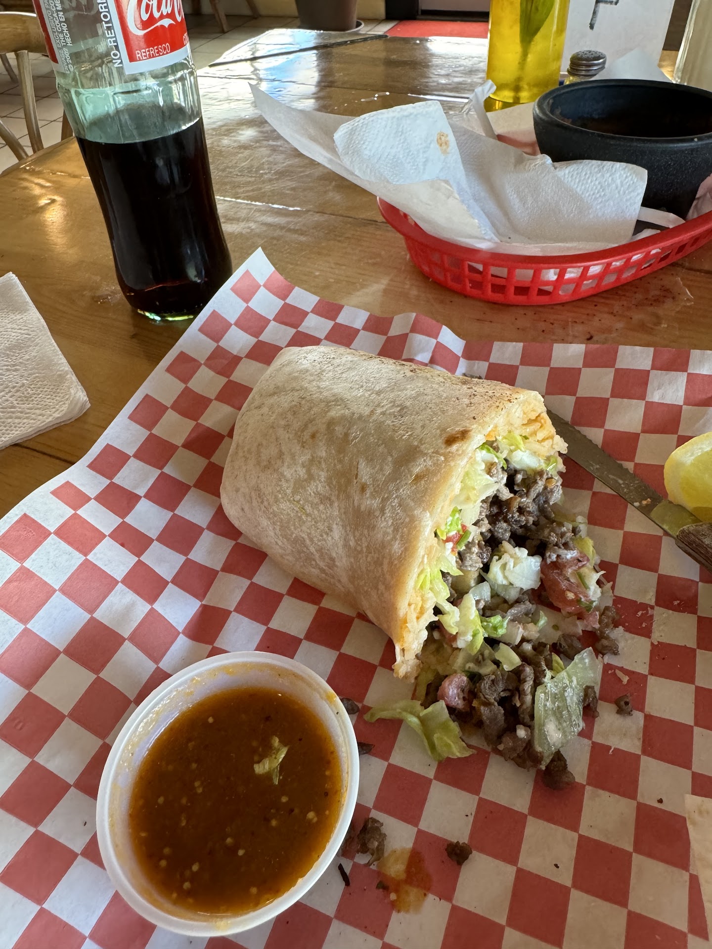 I had the bistek con salsa roja. It was a new kind of dish for me and very good. The refried beans were excellent. The homemade tortillas fresh and amazing.