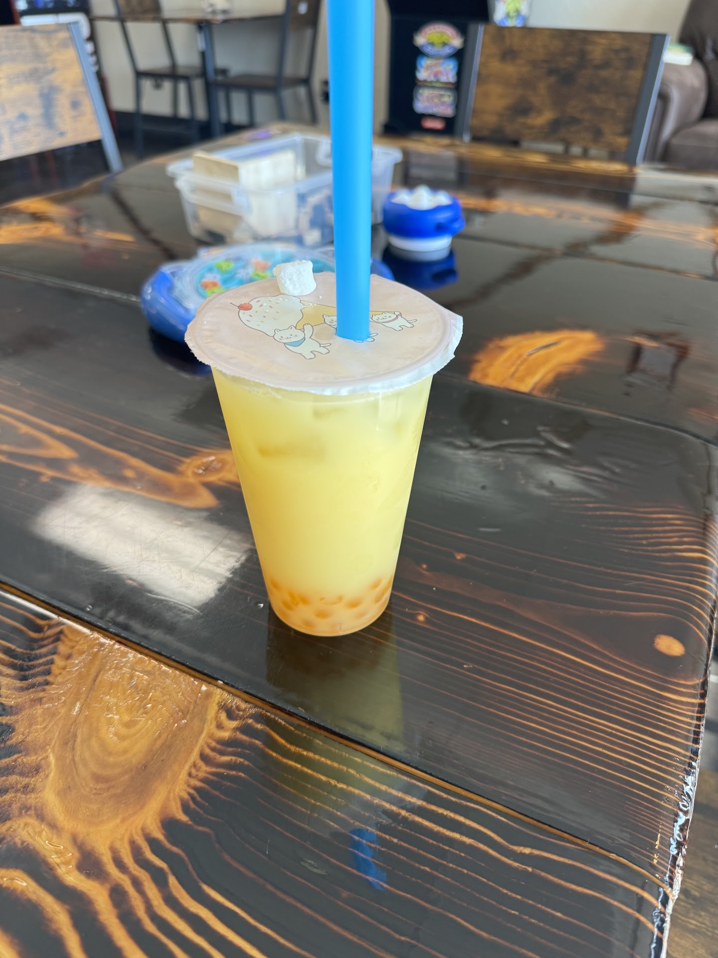 Read moreAverage drinks and food, long wait, very very loud. Waited in line 20 minutes to order. It was overwhelmingly loud with video games on one tv, music on another, kids banging on electric drums, and a guy loudly playing the ocarina, not to mention the noise of 30 people in one room without anything to absorb sound (like booths or panels). Not a place for those with sensory issues. 25 minutes AFTER we ordered, our drinks came, so by the time we got 3 bobas after 45 minutes, we just...