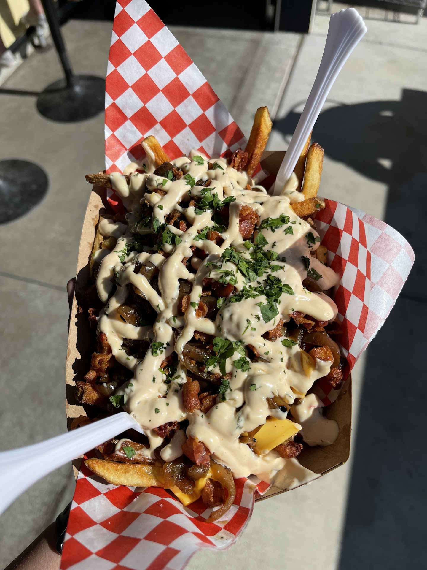 I'm disappointed with the recent shortened menu.They got rid of the deep-fried soft petzels, which had been my absolute favorite. They also ditched the premium polish dogs (which had been well-worth the $1 upcharge), and shortened their hot dog menu to more basic toppings. The burger I got yesterday was good, but more expensive than before, and the fries I got were terrible. They were dark brown, but soft with no hint of crispness, and not very warm. I hear from others that their new chicken sandwich is great, but I'm not sure I'll be back soon. The other food trucks at The Falls are better. ps. It's funny/sad that the google review app here asks me what I had there, and it lists several options that are no longer...
