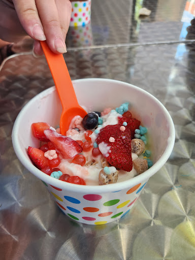 Ā Ā Ā Read moreThe selection of flavors varies, however, they always have a good mix of healthy and more dessert-style flavors. Topping selection remains the same but there is a massive variety ranging from fruit to cookie pieces to caramel syrup...you go in and you get your cup, choose at least one flavor (and divider if necessary) then you pick any number of toppings. If youāre like me and you like a whole bunch on your treat itās a little pricey but itās well worth it. Delicious, clean, and theyāre actually knowledgeable about what different things taste like. One guy in particular seems to legitimately enjoy thinking up the flavor selection and explaining the different choices. Steven the owner is really cool.They even have water bowls for the pet...