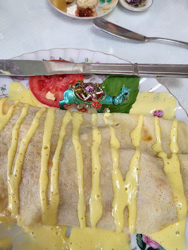 I wish I could leave 5*!! The concept is great and a tea room is absolutely needed in Klamath Falls. A lot of time and attention had been given to decorations and the place looks great. It was fun going at Christmas time and the place was adoringly decked out with Christmas stuff.... But.... I would have preferred regular tea things. I would have found them prettier. Santa plates are a little kitsch. That's just personal taste, obviously. Really the only problem was the service. Right away our very nice server told us that the service might be slow because they had two big group in. That's okay... But it's kind of like saying, "we can't do our jobs well." Actually, there was only one big group and they left before she even took our order so... I don't know... The second oddity, was that she explained that they're changing their format, they used to guide you through the tea chosing, but it was just too time consuming, so they're going to be labeling the teas and leaving them on the tables for the customers to do it themselves. That's fine. So she left us with the teas... But... They don't have the labels yet, so naturally it was impossible to work out which of the green teas was which. I found it bizarre to implement the new program before they were actually ready to. As promised, we did have to wait ages for our food. Not such a big deal, but I didn't see why they couldn't have gone ahead and served our tea while we waited. Tea then finally came with the food... But, and this was the worst, and the reason I had to give three stars. It was merely lukewarm!! On a cold snowy day. Lukewarm tea. So sad. I had to ask for milk - which wasn't offered. She then volunteered honey. The milk came... But it wasn't milk. It was half and half. I wish they'd been specific and said, "we don't offer milk, would creamer be okay?" (Side - in England, it would be just milk.) Or indeed, if they have milk, had brought milk. The honey didn't come; had to ask again.