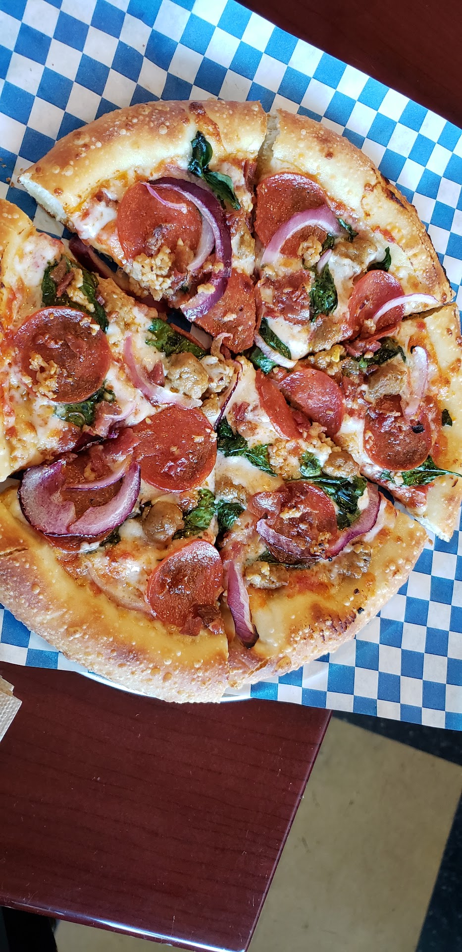 So where to begin. The crust has a nice chew to is with a crisp bottom from the super hot oven. I'm guess 700 if not more. Gives it a char. I would have like a more aged flavor of the yeast but I understand the issue at having to slow rise the amount of dough they go through for the amount of time that takes. They only have so much room for storage. The sauce I was worried about after reading their description of seasoning but to my relief it was perfect. New York sauce is thin and not very acidic like the thicker sauces at a lot of chains. You taste it but it doesn't overwhelm the pie. The cheese is the perfect amount and good quality. For topping we got a large pepperoni and and half bell pepper half cheese. A good test for New York style is Plain cheese. This is where I like a little more age on the dough but like I said I don't see where they could possible store the amount of dough they would need for that amount of time. All together the cheese pie had good overall flavor where the cheese and sauce did not take away from the crust. The pepperoni was nearly perfect. Just the right amount of pepperoni so you taste it but that's not all you taste. Spot on. The Bell peppers were nice and fresh and still had a nice crunch to them. Again the toppings were just the right amount. In conclusion I must say they have done their homework and I admire all the hard work they have put into their restaurant. Making New York style pies is not an easy task and is a lot of work. If you like New York pies you will not be disappointed.