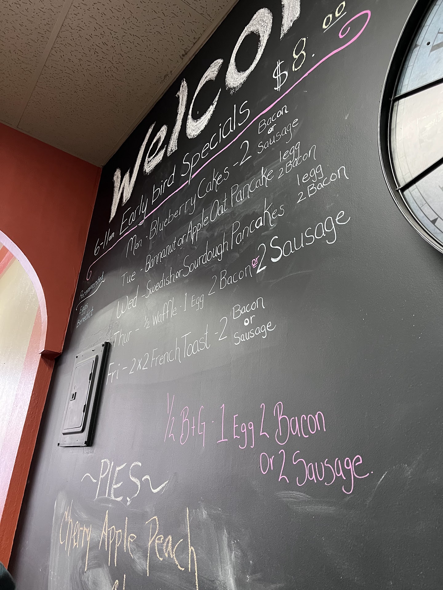 Brought my family in suuuuuuper awkward vibes.... no one said anything we just stood there...I asked if it's self seat finally because it was so awkward standing there.... they said yes.....then the rude old people we passed on the way in came in. Ok even more awkward..... the server was suuuuper awkward..... the food smelled good but definitely not family friendly vibes. We didn't even make it to ordering food. The other waitress came over and helped the super rude old people we passed on the sidewalk. There was plenty of room and my husband is deaf and the old lady was all like yelling "excuse meeee" like whhhhhat???? It's a sidewalk and we passed you respectfully we didn't want to walk on your hills with kids. They came in after us and got helped first. Ok fine I get it they are elders and probably regulars. Still no signs saying like "please seat yourself" no "hello welcome in" no "I'll be right with you" no smile from the one server who helped us just a scowl and if we wanted coffee and cups for the kids which was nice I guess? Idk I won't be back not the environment for me. Definitely not friendly. Definitely not the family welcome service the other reviews...