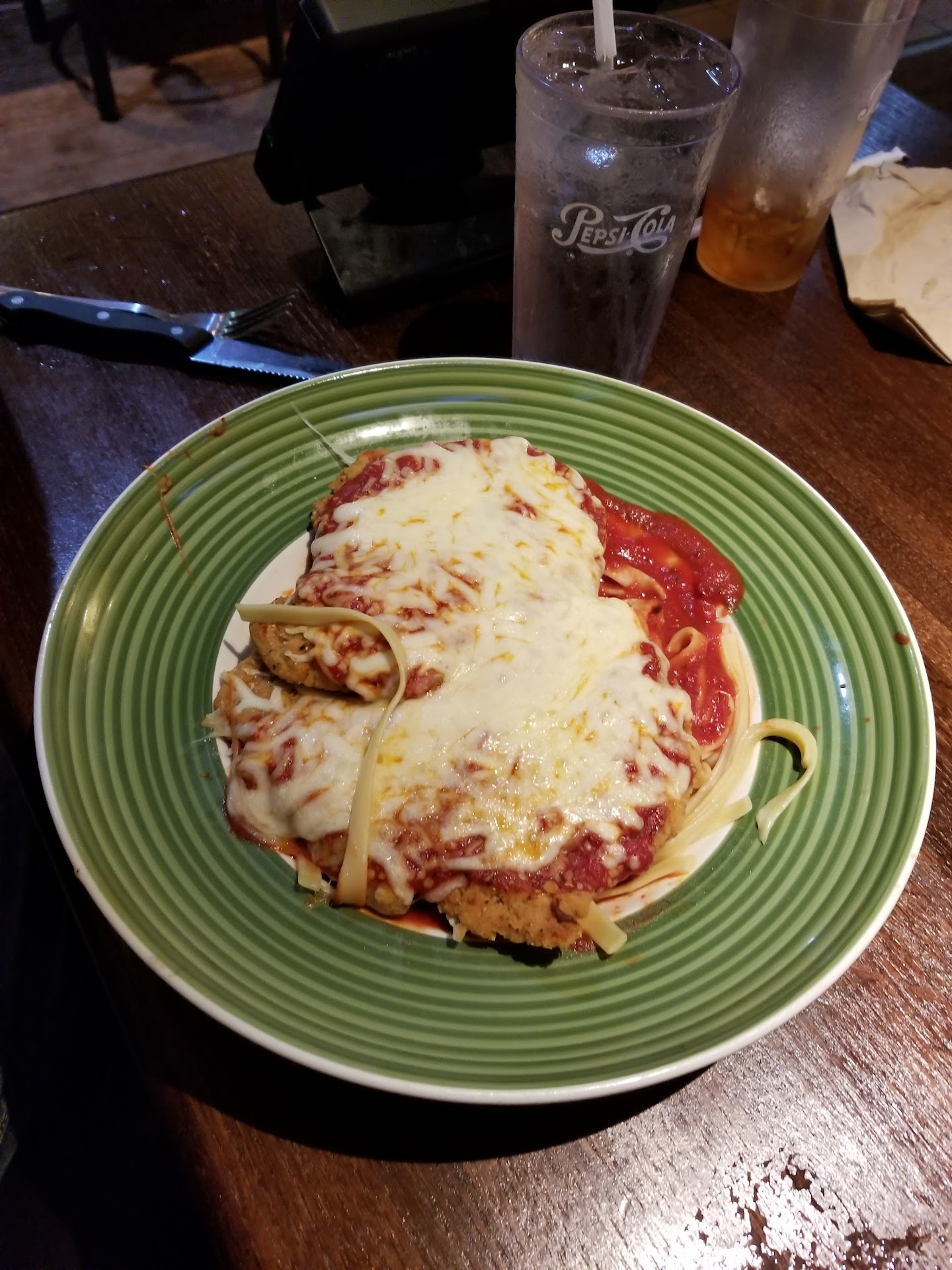 On her next pass, which was when my properly prepared meal came out, I advised her that I needed a refill, without ice and actually got it this time. She took my wife's back to the kitchen to get it out of her face and offered to let my wife get something different. However after that taste, she had lost her appetite.