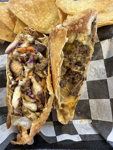 The quesadilla was good. The shrimp was cooked nice but there wasn't a lot of volume to this quesadilla. Just cheese and shrimp, not a whole lot of flavor for me. All quesadillas are served with chips and queso, big bonus for me! Then the eggroll, these things are MASSIVE! An eggroll stuffed with Cabbage and jerk chicken, wooo these things packed some heat but they were delicious. I split the eggroll with a friend of mine who couldn't stop raving about the jerk chicken quesadilla and the eggroll.
