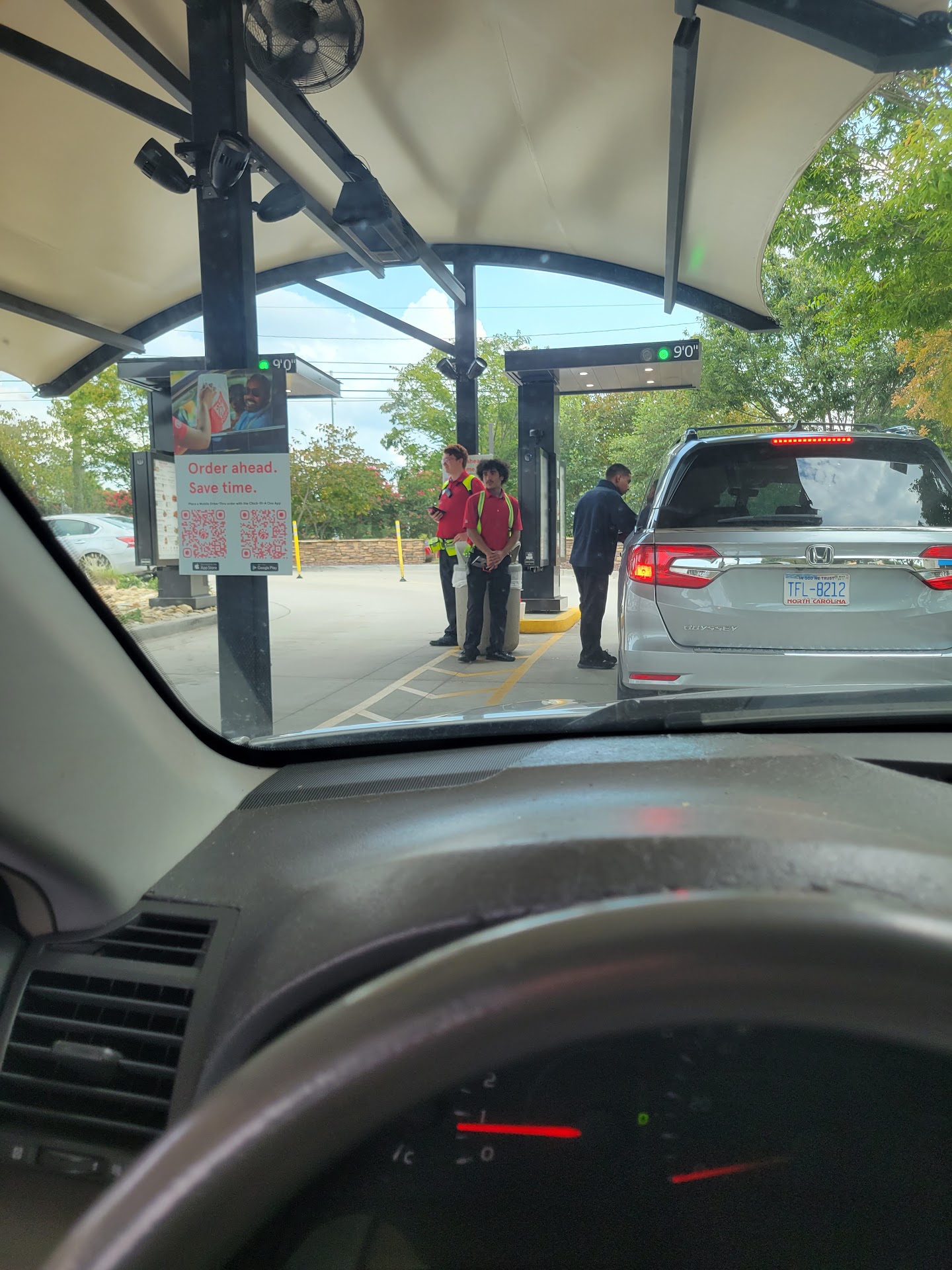 Read moreWas not the best visit. Although I was only 4th person in line, it took so long to get to the speaker to even place the order that I was convinced either they were in process of being robbed in there or they were in back actually killing the chickens themselves. Every veh at the speaker was a long stay. I get up there and no one comes on to take the order for at least 30+ seconds. I realized that was the issue. I asked for extra well done because I like the chicken crispy and when we get to the window, there is a manager but perhaps he was tired at 9 pm because he was not with it. 4 young employees standing there gabbing to explain to one person how the screen up on wall worked, with a manager standing there with his back to them. This is not how ChickfilA runs. It took a long time for the food to he handed out the window even though manager was standing there doing nothing to move it on and then had to wait for my two drinks. I had ordered three chicken sandwiches, one 12 count nugget and two med lemonades - not a big order and as long as it took just to get to the window, they could have cooked 10 sandwiches to a charity BUT what did we get, regular NOT crisp chicken sandwiches HOWEVER all three sandwiches had stickers on them that labeled them extra well done. One of the sandwiches had no meat at all over a third of the sandwich as if only the size of two very flat chicken strips. I k ow what the did, they picked out the ones that appeared to be most crispy out of what they had cooked. I can slap a label on a hamburger and say it's chicken and nobody will know except the kitchen and the buyer. If you had in the kitchen the help you had at the window with the manager standing there at the window - well what on Earth was truly going on in the kitchen?? Again, I realize this is not the norm for ChickfilA's as a whole. Just very disappointed to have paid that kind of money and got cheated on quality of all the sandwiches and poor chosen quantity on one of the sandwiches. The nuggets and...
