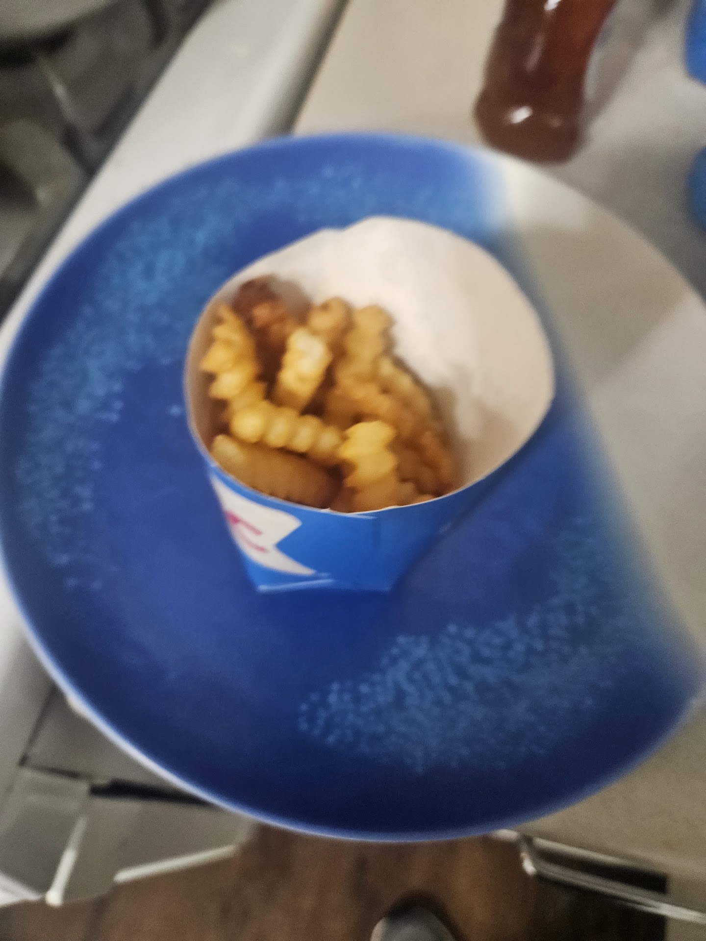 I placed an order ahead order on the app, I showed up about 15 minutes late for my food. No big deal, I was expecting the food to be cold, and my ice cream to be a little melted. I got there checked in on the app, they bring out my food, guy who brings out my food sits there for a second expecting a tip. I had already put one on the app for him. So he goes back inside and I start to try to eat my food, the large chili cheese tots I ordered barely had any chili on them, and maybe had enough tater tots to be a medium. My small blast had a hole in the bottom of it, so it leaked all of my car. I rung back in and asked for a small cup just so it didn't leak more. And the mozzarella sticks, granted cold because I showed up late, but tasted so bad, like the grease in the fryers were not filtered. Worst sonic experience I have ever had. I know how sonic is, and how good it could be. I have worked at a sonic for two years and still work there. Knob Noster Sonic is the worst sonic I have...