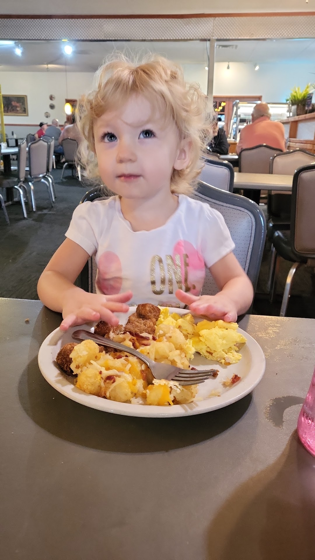 Buffet - not sure if it changes week to week or day to day over the weekend but the below is what the baby and my husband had Scrambled Eggs - Husband said they were good Breakfast Potatoes (I think they had like melted cheese on them) - Husband said they were good Krunchy French Toast - The baby devoured them, and she didn't even add syrup (so obviously really good lol) Sausage Links - Both my husband and the baby liked them Biscuits and Gravy - My husband suggested I try them next time, as he said it was good and I'd like it, and I usually only like his homemade Gravy. So I am excited to try it next time