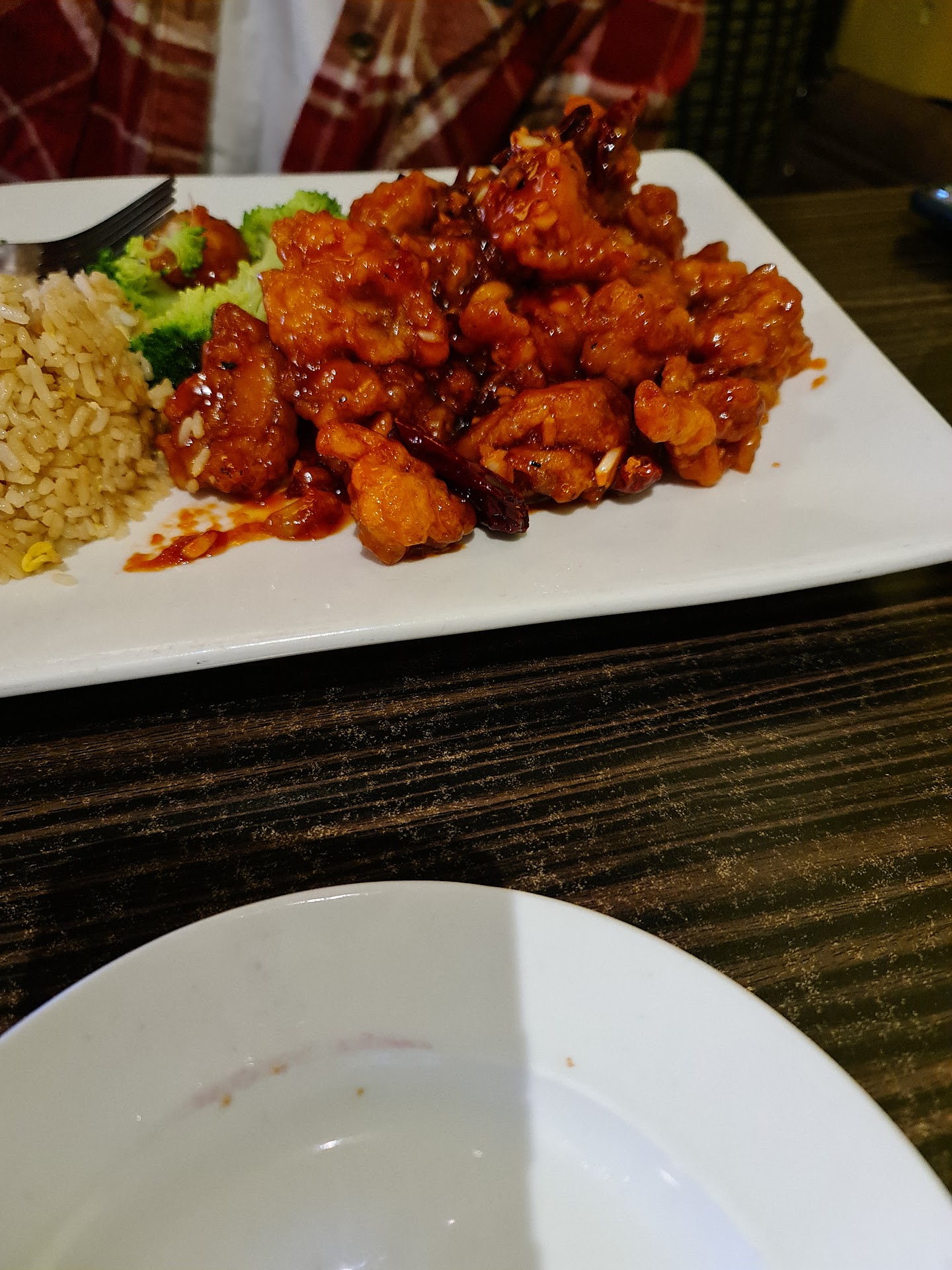 We ordered several different dishes for variety on this visit. The general tso chicken had great flavor and wasn't overly spiced in the heat department but rather had just enough heat to give a little bite with a whole lot of flavor. The breading had a great crunch (which is usually lacking from other Asian restaurants in the area). The orange beef was perfectly seasoned as well and had a great texture. We also ordered a roast pork in honey sauce which was probably my least favorite but least favorite didn't mean it wasn't good, it only means I was too busy indulging in what was my personal favorite "The House fried rice". This flavorful entree had the perfect amount of green onions, beef, chicken and shrimp and will definitely be on every order I place here going forward.