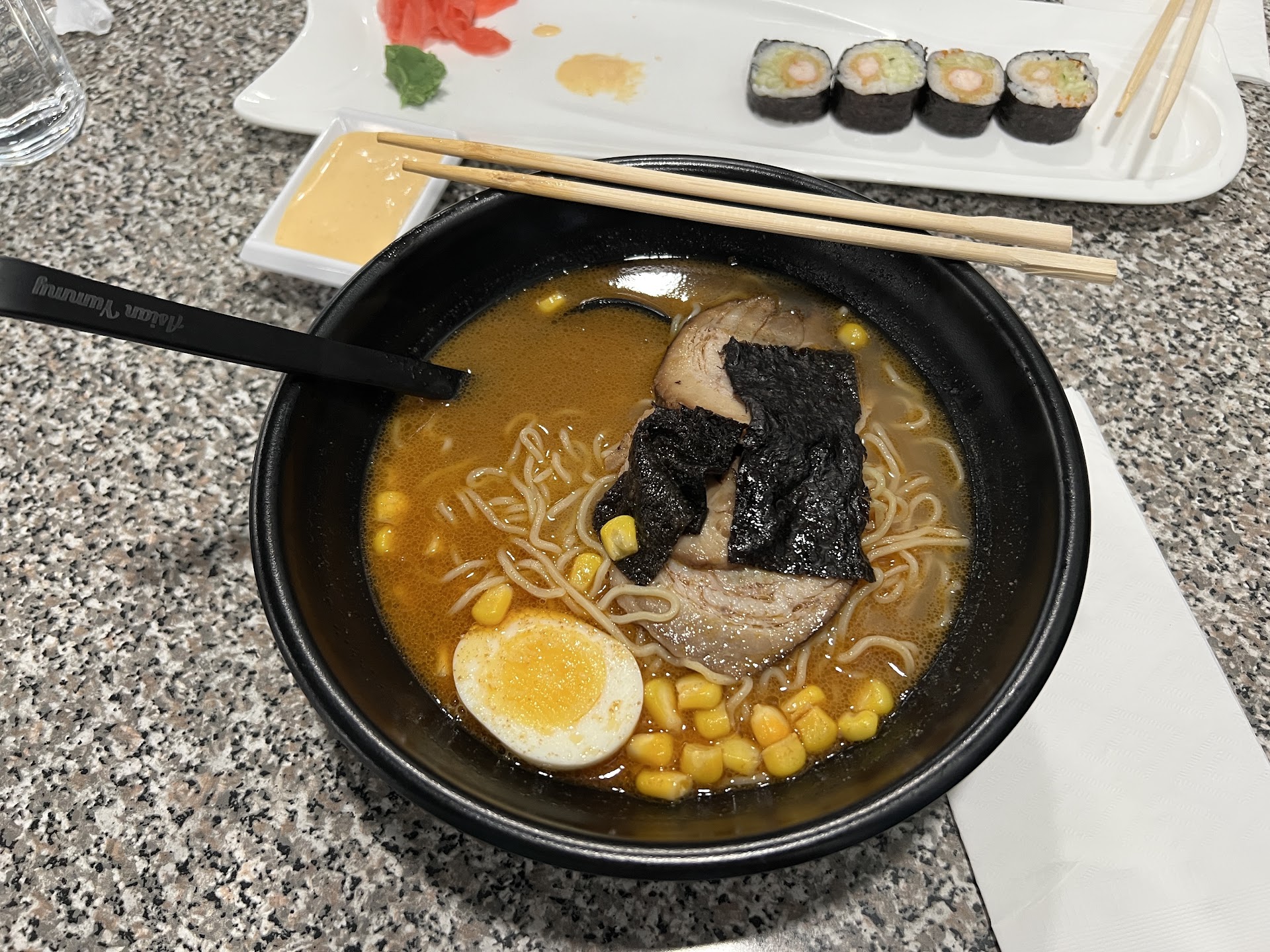 Read moreWarm, friendly service was the highlight of our stop in. We came for a late lunch on a Sunday and were the only ones on the restaurant for most of the time. Still our food came slow. The booth seats are uncomfortable like a bad mattress. Sadly most of our food was disappointing, almost not worth eating. The spicy salmon roll was off, looking like the fish was whipped in a processor and there was something dry and crunchy in it that maybe missed being incorporated. The chicken ramen was rather tasteless, no unami or depth of flavor that you expect from traditional ramen. The only dish worth eating was the honey chicken which really was sweet and sour chicken, and I mean exactly the same thing, pink sauce and all. But the chicken was fried to perfection and the veggies were blanched on point. That would be the only reason I'd ever consider ordering food here in the future. Bottom line, this restaurant should narrow it's menu to do something well instead of offering all the favorites and executing most of...