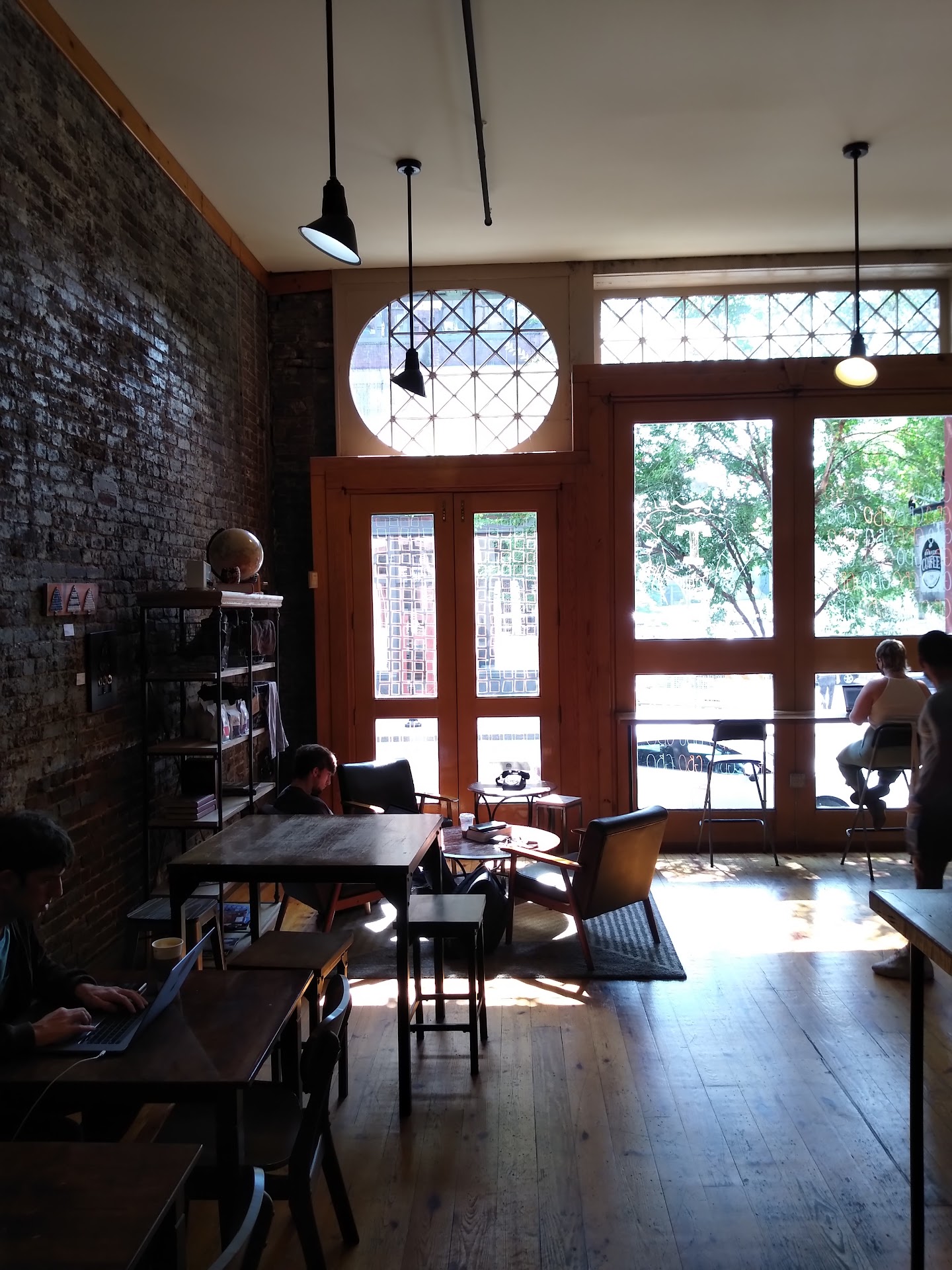 Read moreThis coffeehouse was in an older building with nice wood trim. There was pleasant, low-volume background music. The service, however, was lacking. I got the feeling that the barista did not know much about their craft, as if they had only started a few days ago. It was hard to get information from them about the coffee or the food. Almost like an interrogation. My wife and I ordered the same central American coffee, but she had a pour over and I had a French press. Mine was actually quite good, with aromas of fruit and caramel. My wife’s, however, tasted burnt ; it was essentially undrinkable. Also, the barista did not ask us whether we’re going to stay or take the coffee to go and they just gave us paper cups. My wife ordered a plain bagel, but she received one with everything on it, which apparently was the only kind they had, and certainly did not go out with the coffee. If you are serious about good coffee, I would...