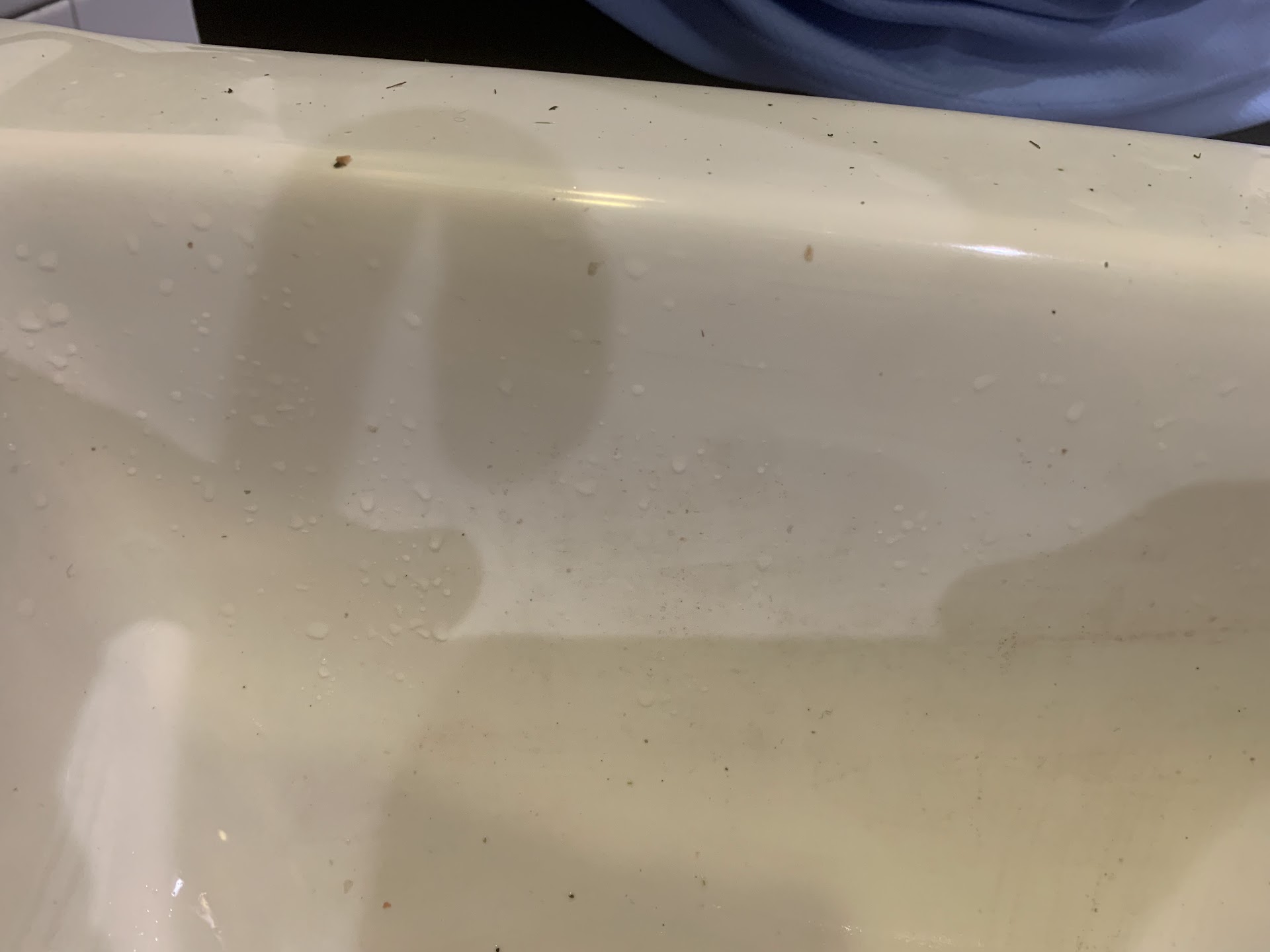 I have attached pictures of the bathroom showing the filth. The toilet remains very dirty, the trash lid is covered with slime, the handrails haven’t been cleaned in a while, the sink is very dirty, construction debris remains untouched.