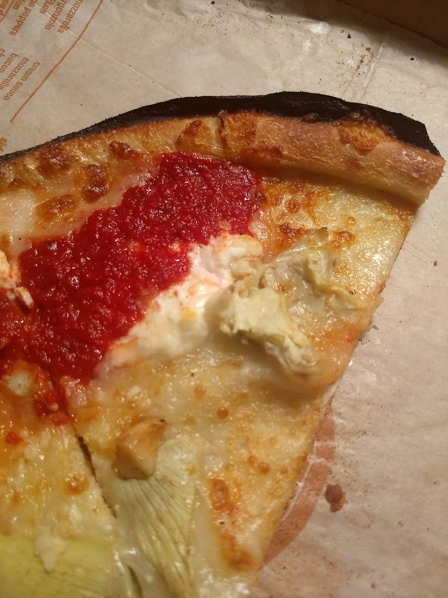 Original review: New favorite pizza....where else can you get a pizza with whatever topping you want and as much as you want. And the number of choices is amazing. I personally love the goat cheese, pineapple and roasted garlic with the usual red sauce, mozzarella and sausage. It sounds weird but it's so good. The creamy goat cheese and the hint of sweet from the pineapple brings it...