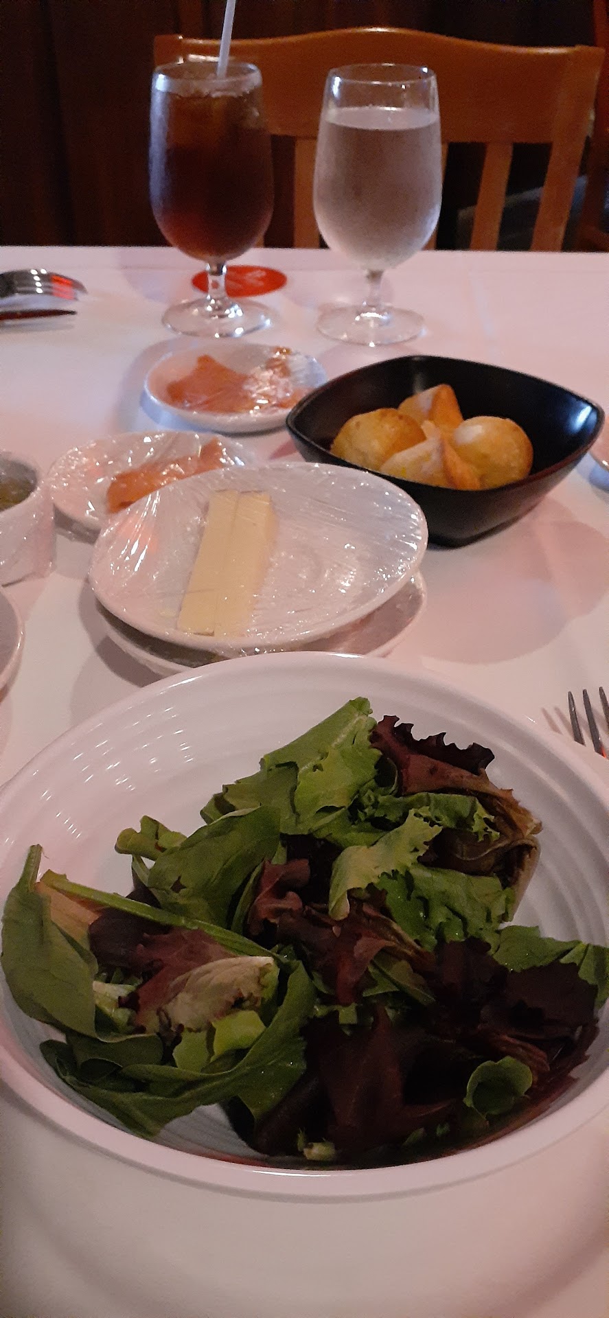 They did have gloves for people to use for the salad bar, I think I was the only one that used them haha. The salad bar itself I would say really sucked. There was some wilted, lettuce and basic veggies to make a salad. I'm used to Brazilian steakhouses that have a whole spread with fruit and hot side dishes and cold side dishes and salad fixings. The salad bar itself was disappointing.