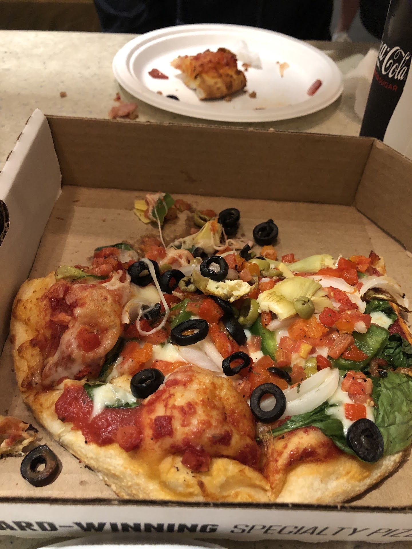I ordered an individual size, loaded pep and cheese, along with a chef salad. The pizza was excellent. Great flavor, the didn't skimp on the toppings, even though it was an individual size. The only complaints for the pizza were actually a result of me not ordering properly... I typically order my crust well done and lite on the sauce, neither of which I did, but that in no way detracted from the quality of their pizza.
