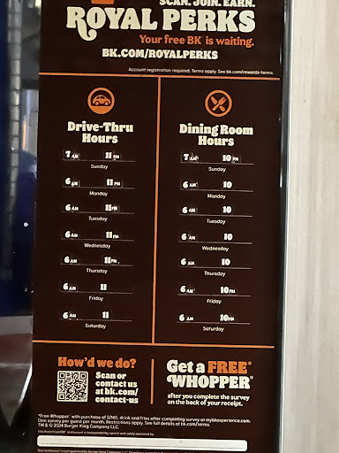 Read moreJust arrived at Kroger park Burger King to pickup order made via app. Website states close at 11, ordered at 10:18 and tappped Iâm here at at 10:30. All Lights on and apparent diner inside. Guy comes to drive thru saying close at 10.! applepay already charged!!. Kendal the manager just came to drive they and wanted me to leave because he is closed. Said my problem was with the app. No refund or apologies from him. Nice......