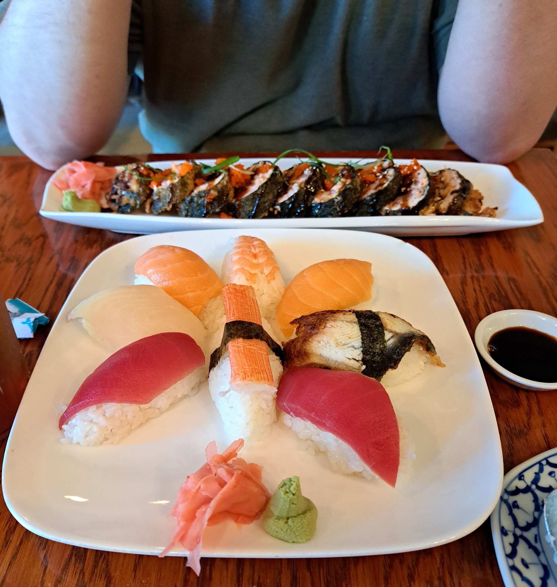 Well I haven't ordered their sushi, on the Thai side of their menu there's really not a bad item. Their curries and drunken noodles are flavourful and all of vegetables are usually pretty crisp. Any of their entrees can be made with beef, pork, chicken, shrimp, or tofu so they are definitely vegetarian friendly. Also, their 0 to 10 heat index is definitely accurate -- for me, spicy starts around a 6 or 7, while a 9 or 10 can leave you sweaty.