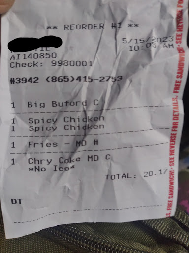 My main recommendation would be that they add a fountain machine in the dining area. There's a perfect bit of space next to the inside pickup window for a small fountain machine to be placed. There could also be basic condiments as well as napkins and plasticware placed next to the fountain machine. As it is now, customers have to wait and ask for refills, napkins, condiments, and anything else they may need. So it would vastly improve the dining experience to place both a fountain machine and supplies in the dining room. There's not even a single napkin dispenser anywhere in the dining room. This is inexcusable. I really hope corporate will implement these changes.