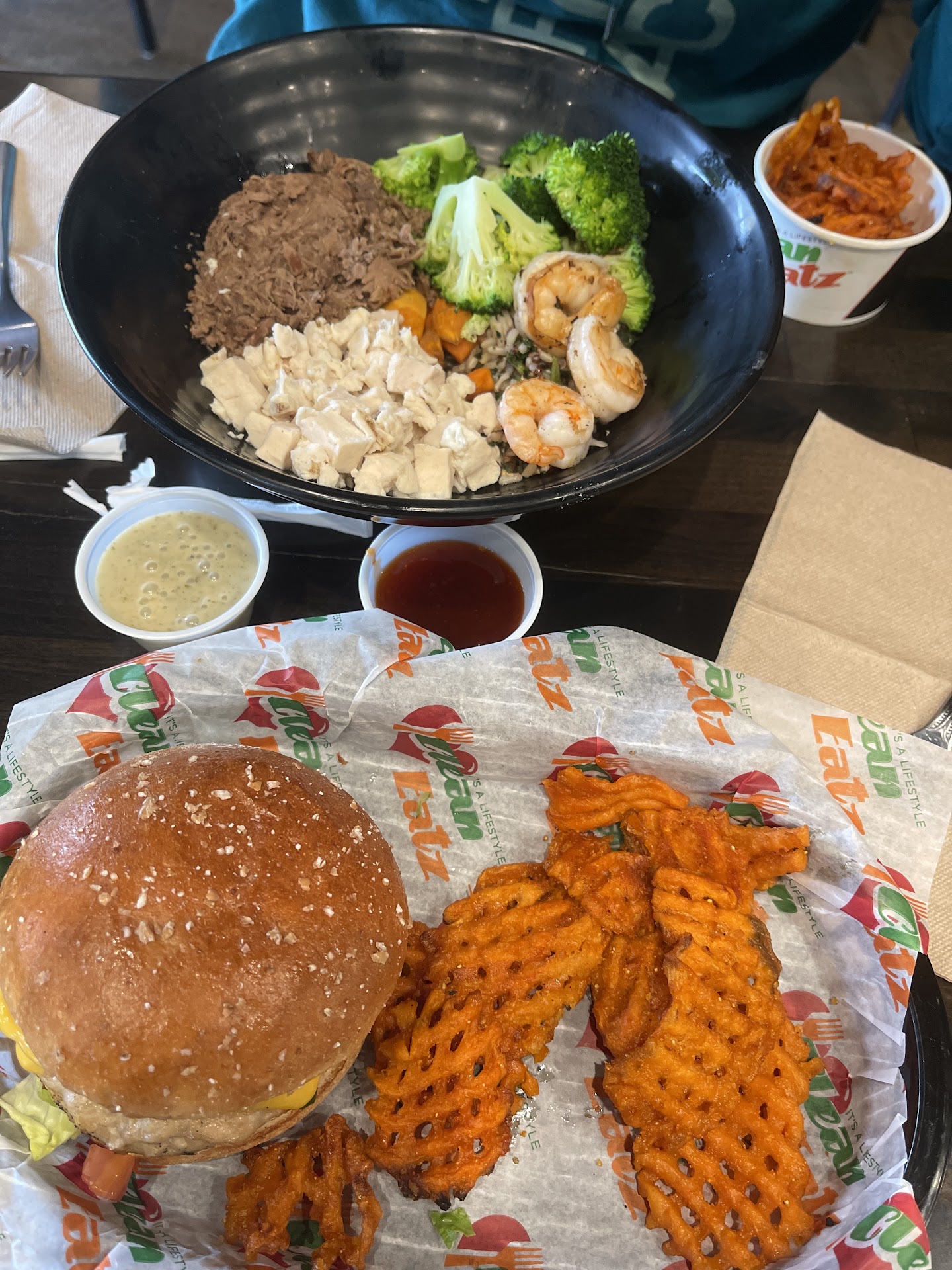 The cashier was friendly and tried to be helpful. We ordered the brisket and Mac which tasted like reconstituted shredded beef jerky. Just like the stuff you get in a dip can with vaguely cheese noodles added. The actual food provided looks nothing like the advertised meal. Chicken bacon ranch flat bread which had almost no flavor and the chicken seemed like the "grilled" strips you get from the lunch meat area in the supermarket. The peanut butter which I'm not sure was peanut butter had a terrible taste and consistency(is it vanilla protein powder with peanut powder and coconut oil?) The clean food and drinks tasted like a mix of badly chosen chemicals. Perfect if your into that but this place may have cured me of my adventurous spirit of trying new places. That's just the food. I know it is ultimately a parents responsibility to insure their children's safety but it's difficult when a restaurant supplies broken...
