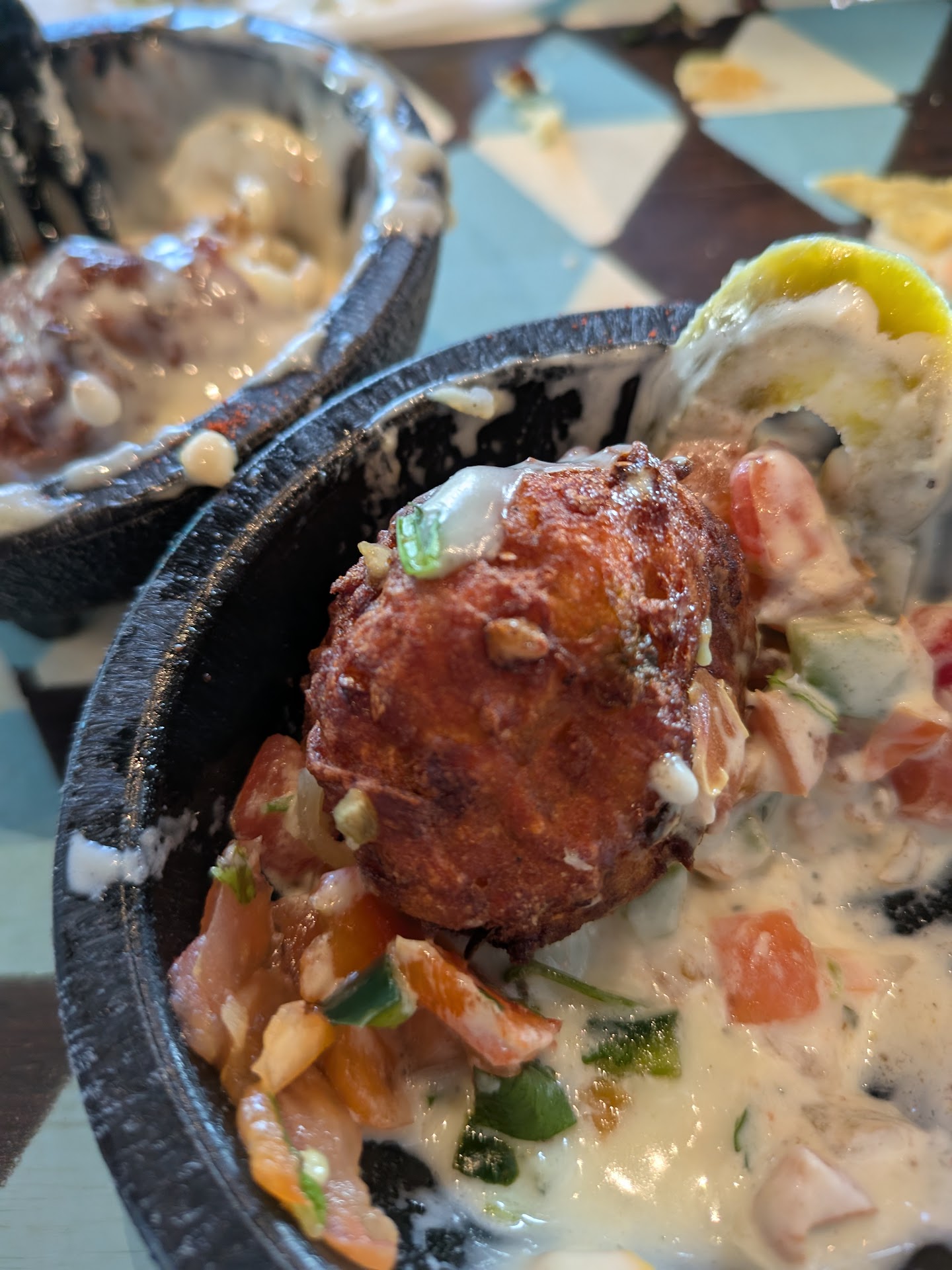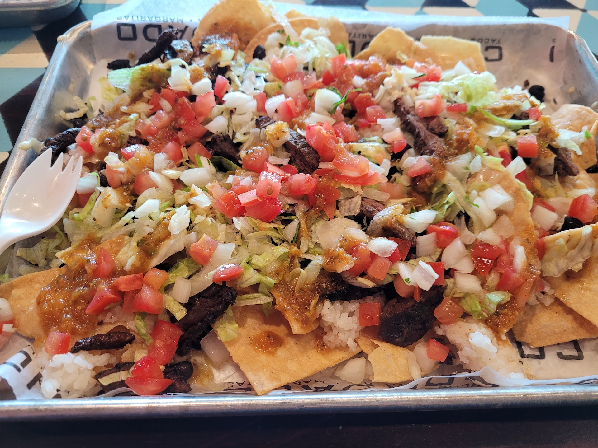 Read moreThis place is ridiculous and their food is terrible. I cannot believe that this place is still a thing. What's really disappointing about this place is the first two times we went there were pretty good. But this was back when it opened. However long ago. Recently I went there and this has to be some of the worst food of this kind I've ever had. The tater tots were nothing but a wheat fest. Are you kidding me? Give me a break. Why would you put anything but potatoes in your tater tots? Also they weren't even shaped like tater tots. And the disgusting onions. And tomatoes that were on top of them with a cheese sauce was horrible. Why would you do this to tater tots? I posted a picture to show you how gross that food was. I ate a taco that was supposed to be a ranch shell but it didn't taste like ranch at all. And to order your food here is One of the most complicated things I've ever seen in my life. The server had a mouse voice and kept apologizing for no reason at all. Although after eating the food I would say somebody should apologize. In a market where it's this competitive, how can you stay open compared to all the other options available. If this place is going to continue to be a business it's going to have to revamp this menu. Luckily it's got cool art on the walls to look at because something's got to be worth going there for. There wasn't a soul in the restaurant besides us. And that's probably an indication of where this restaurant is today. If you want. Really good food like this. You should go to Catalya Cantina near...