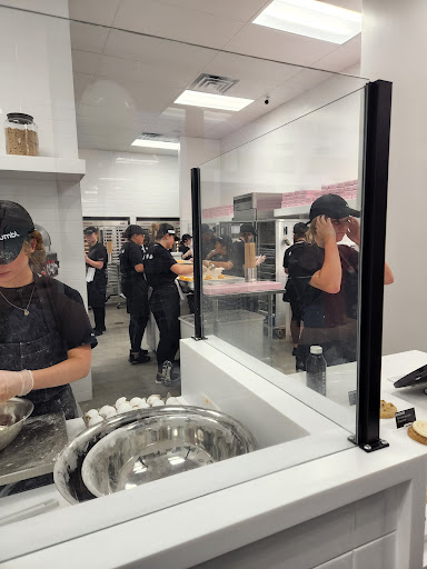 I have ordered cookies from here several times but each time there's been an issue. My main issue is the fact that they allow their line to build up which effects those wanting to visit super chix if they do not turn into the shopping center. On grand opening day I ordered a couple boxes of cookies but they over- lapped one of the cookies and that wouldn't be horrible except for the fact that that box was a gift. The most recent issue happened today when the dasher went to pick up my order and had to message me that they were in line and only half way to the front of the line to pick up my order. I hope they figure out how to manage their line because with their limited days and hours this doesn't look good for them. I've visited a few crumbl cookies with similar location sizes that did not have any issues managing their lines. On top of that, the smores brownie cookie was burr around the edges which I've also never experienced before. I love Crumbl Cookies so I truly hope this location works...