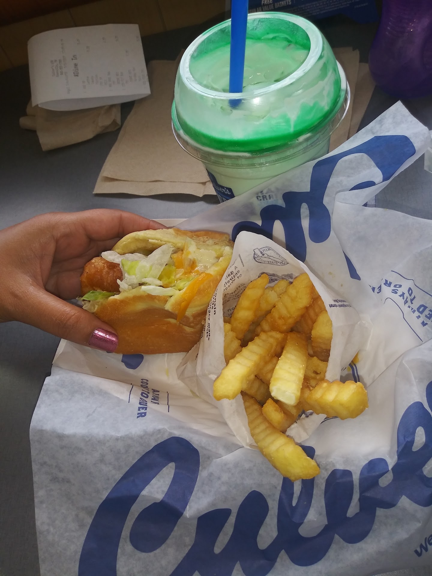 My first visit to Tennessee and First time to Culver's was a great experience, leaving me satisfied with both the food and service. I had heard a lot of positive buzz about this place and comparison to In&Out burger and it certainly (unfortunately didn't) live up to the hype. They are known for their signature Culver Deluxe and ButterBurgers, fresh frozen custard, and friendly hospitality, Culver's delivered an enjoyable meal that I'll remember. For my main meal I tried the Double ButterBurger with cheese, customized with only ketchup. Perfectly cooked, with two smashed patties that were good but not well seasoned. Culver's lightly buttered and toasted bun, which adds rich flavor that pairs beautifully with meat. The melted cheese brought a creamy texture, even a simple burger should be very tasty.. it really wasn't savory as l expected but still good enough to finish. I also ordered the crinkle-cut fries, which were golden, crispy on the outside, and soft on the inside. I also tried the vanilla shake, which did not disappoint. It was thick, smooth, and perfectly sweet, with a rich, creamy vanilla flavor that tasted far superior to your average milkshake. Finally, I (big back) also had the North Atlantic Cod fish sandwich. Served piping hot, the fish fillet was crispy and golden on the outside while remaining tender and flaky on the inside. The lettuce was the only downfall as it was a little soggier than I would have liked. The freshness and temperature of the sandwich were impressive, and it was a nice surprise to enjoy a seafood option at a burger joint. Beyond the food, one of the standout aspects of my visit was the service. The staff was friendly, attentive, and helpful, creating a welcoming atmosphere that added to the overall experience. They took the time to explain the menu options, answer questions, and ensure my order was prepared just right. From the prompt service to the genuine smiles, their commitment to customer satisfaction was evident. Overall, my first experience at Culver's was outstanding. The combination of delicious, freshly made food and excellent service made it a meal l'll gladly repeat. Whether you're in the mood for a ButterBurger, Fish or Chicken Sandwich, some tasty fries, or a creamy shake, Culver's is a great place to satisfy your cravings. I'm already looking forward to my next visit!