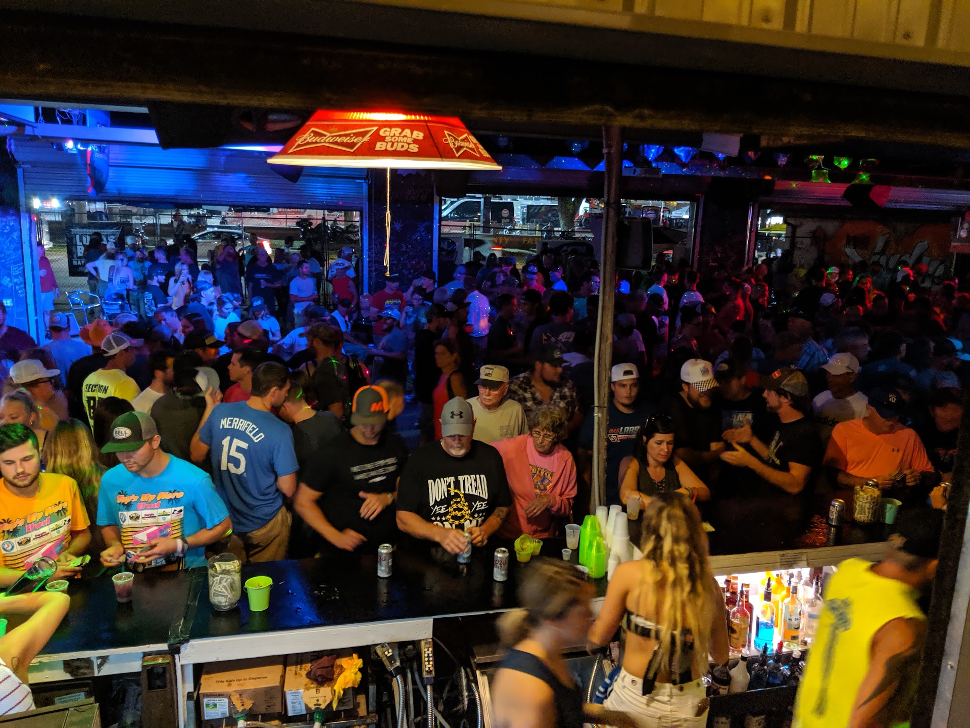 During the week of the Knoxville Sprintcar Nationals, the after party was definitely at Dingus'! Although, it was definitely over capacity, the bartenders managed to stay friendly and serve drinks quickly. Dance and Hip Hop was the main genre, more country could have been played because it was filled with rednecks and hicks (a good thing). It was a good time and almost free entertainment to say the least. I'm sure we will visit...