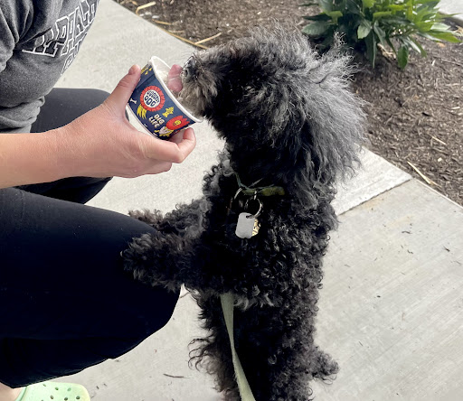 Some folks don’t enjoy the leaning out the window, asking about your day, etc.: but we love it, and our pupper Yogurt loves it even more. He loves that the staff sees him on the way into work and comes over to give him pets, and the wonderful pupcups.