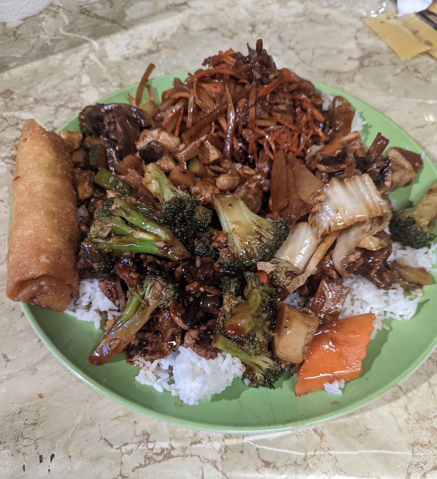 Read moreIf you like oil, then you will like the food here. Got a simple order of an egg roll, sweet and sour chicken, beef with mixed vegetables, and curry chicken. As you can tell in the pictures, there is a lot of separated oil in the beef with mixed vegetables and what I could salvage of the curry chicken. If you can get past the oil, the taste of the curry chicken was okay, but the oil overwhelms everything. Unfortunately, they hadn't put the lid on completely so half of it spilled out in the bag when taking the container out, leaving a layer of oil over everything. The sweet and sour chicken was cooked a bit past what would be appropriate. Not sure if this is normal or if they simply were busy and didn't get it out of the fryer in time. The beef and vegetable were a bit over- cooked, too. I will say, though, the egg...