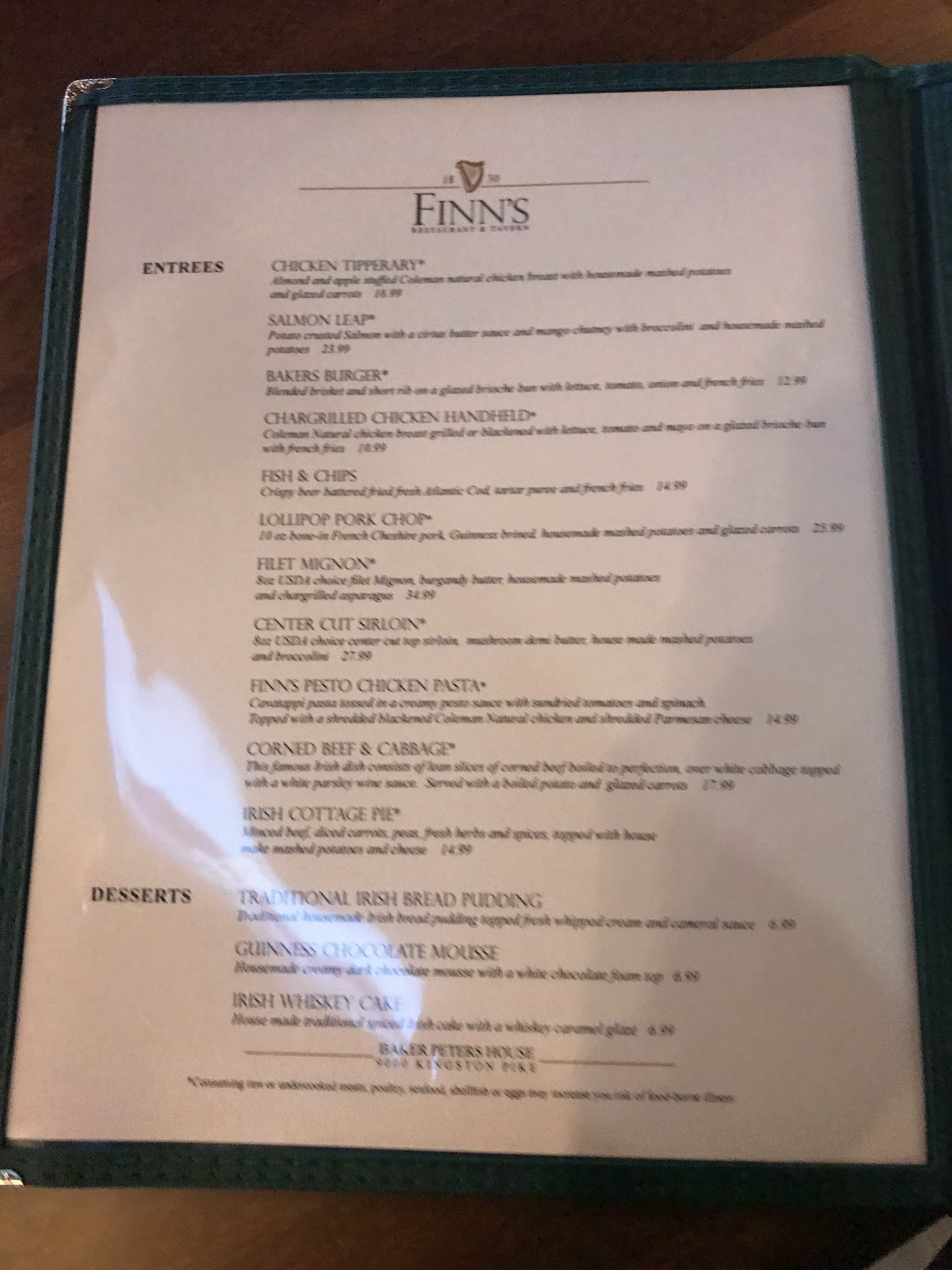 Read moreI hardly ever write reviews, but what has happened to Finn's? We went a couple of years ago and kept meaning to go back. Last night we went, and I can't remember ever having a more disappointing dining experience. We had a reservation for the dining room, but they seated us in the lounge area. This meant we were in a corner out of view. The music playing from the speaker over our table was just a radio station which meant that there was a lot of talking. That's not great for visiting over a nice meal. It took an hour just to place an order, at which time we were told that they were in the middle of some remodeling which meant there were NO draft beers available unless we didn't mind them being warm. They were out of some of the better bottled choices as well, so we just ordered some Scotch eggs and I had a rather unremarkable cocktail. Another 30 minutes or so passed before we were asked for our entree order. We waited... and waited... and waited... The server said he was keeping an eye out for our order and would bring it just as soon as it was done, and that they were "backed up" in the kitchen. When our fish and chips and scallops arrived, they were not exactly piping hot. Not cold, but the scallops had obviously sat long enough after being cooked to become tough. The description of this dish was interesting, but the only vegetables with the scallops were some sad-looking leeks. Not enough food considering the price for this dish was $34. I know scallops are expensive, but for that price the food should have been much better. The fish and chips were pretty good for $18. I'm sure they were better when they were hot. We were hoping to have dinner and go home before the band started playing because it wasn't actual Irish music anyway, only a cover band, but we were there a full 1 1/2 hours just trying to get a decent meal. We won't...