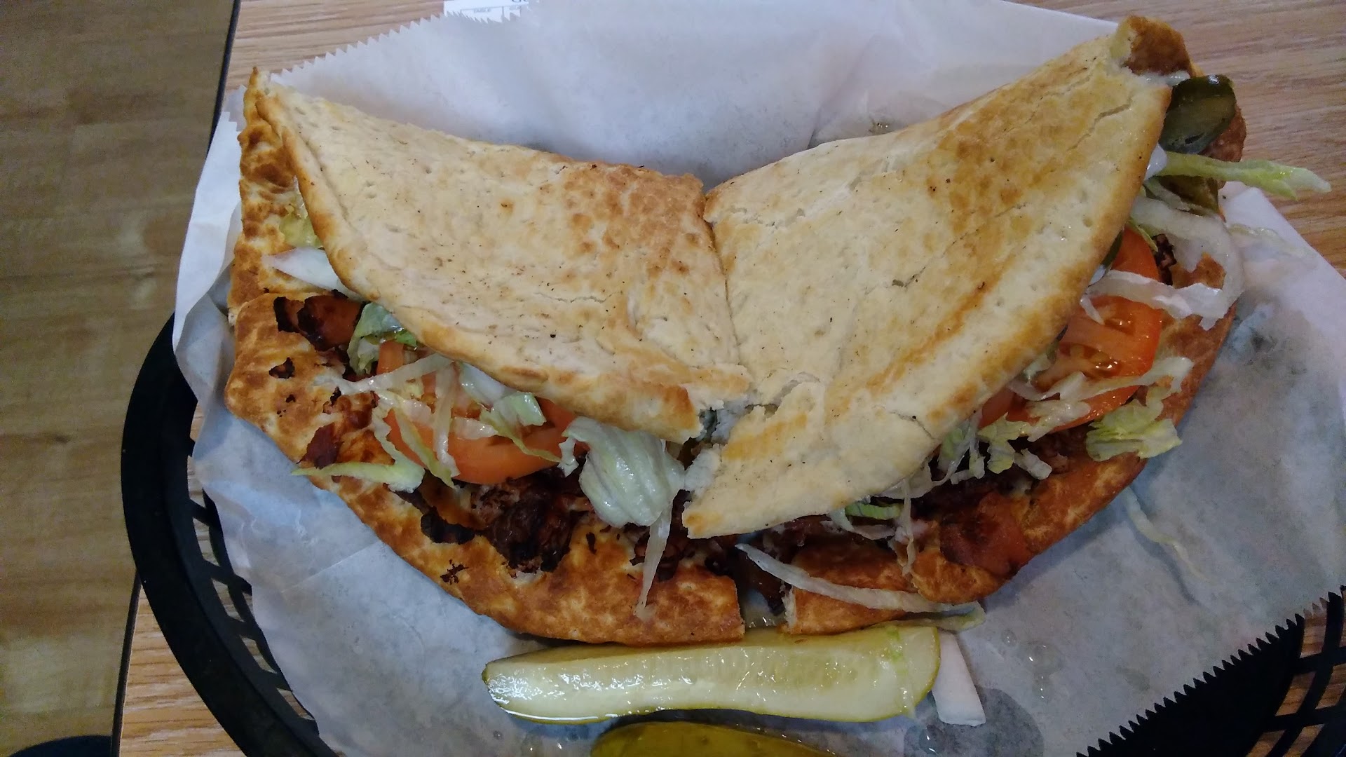 This gastronomic dilemma doesn't end at the pizza. The signature Wedgie sandwich, with ten ounces of meat, is enough for two people, and is a culinary masterpiece. It's a meat mountain of flavor. But what about this Wedgie makes it so much more desirable than its namesake, that teeth-gritting experience from Junior High, the very memory of which brings tears to the eye and causes grown men to need reassuring hugs? Is it the crispy, apple-smoked bacon, the fresh tomatoes, the thin-sliced smoked turkey? Or maybe it's the toasted flat bread that barely contains the delectable hoard competing for your taste buds' approval. I like mine with jalapeno.