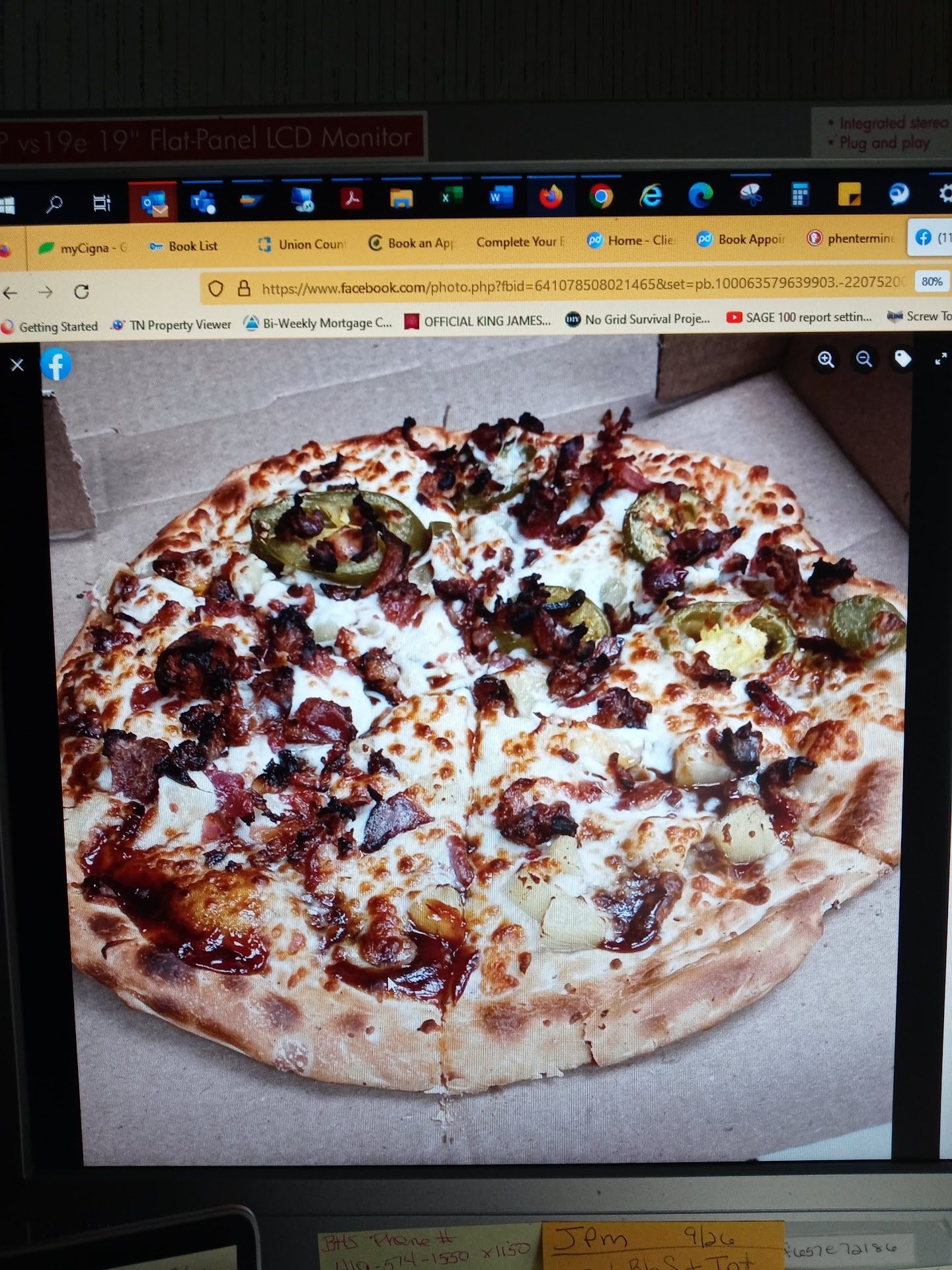 Read moreUPDATE... ABSOLUTELY HORRIBLE!!! The first 2 pizzas were wonderful. The last 2 were made with cheaper lesser quality ingredients. The bacon was now bacon bits as you will see from my pics and this is supposed to be extra bacon. I called and complained and it didn't seem to matter. I am including their Maui Wowi pic from their site which is what we got the first 2 times then you can see the difference with the cheap bacon bits they now use. I won't pay 37.00 for a large and a small pizza where they don't care if their quality goes down with inferior ingredients.