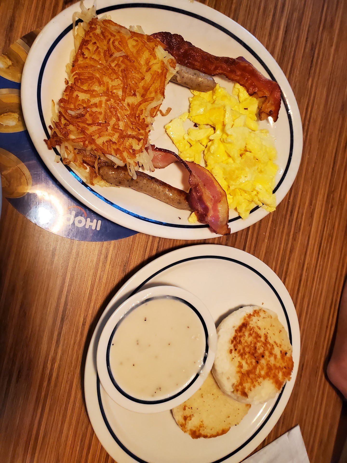 Read moreThis particular IHOP was not a good experience! (It used to be!) I really enjoy writing great reviews but I just couldn't do it this time! The best part of our visit was the greeting from the hostess100% for her! Our waitress "seemed" too busy to be concerned with us, or any of her tables for that matter. We waited for her to take our drink order but we did order our meals at the same time to avoid delay. Unfortunately, it took another 35-40 minutes to get our order. Our waitress never returned to our table during that time. I received tableware with dried food on it and had to ask another waitress for replacement (this waitress was actually keeping busy with her customers!) But, her response was, "I'll let your waitress know." She did return a few minutes later to tell us she had let our waitress know. Nothing. No new tableware, no drink refills, nothing from our waitress. After the 35-40 minutes, our waitress and food arrived. No replacement tableware, so I asked again. I ordered the newly 'revised and returned' cheese/bacon crepe. It was totally overcookedcrispy and brown! I mentioned it to our waitress and asked if that's how it usually comes and she said, "I don't know. It's new. They're just learning it." I stated that's not what it looks like in the menu picture, and that crepes are supposed to be light and fluffy. No apology but she did finally ask if I wanted another. But knowing how long it took the first time I declined and told her to merely inform the cooks about it. It was awful! I ate the bacon on top and part of the center only. (I should have taken a picture!) Definitely not worth $11.50! My husband's omelette order was better than mine but nothing special. Our waitress never returned except to give us our bill. We won't be returning to the Lovell Road IHOP! (Maybe get better...