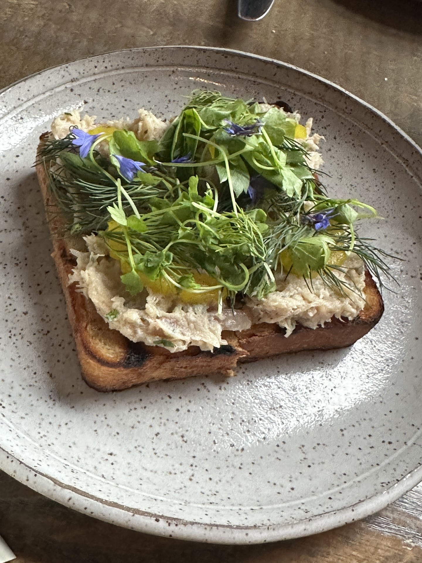 I was delighted and grateful to be one of the lucky diners who got to feast on numerous offerings on its intriguing menu full of seasonal, regional dishes cooked by wood fire. Offerings are organized by "Bites," "Tastes," "Eats," "Sides," "Treats." But even before those arrived, we were treated to tasty hush puppies.