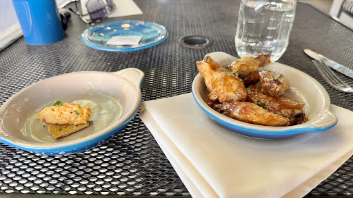 True to a Southeastern menu were delicious and dainty pork belly biscuits with house bread and butter pickles with preserves. Two other "Bites" are grilled chicken wings with Alabama sauce and ember roasted "lunch box" peppers (I guess that might mean baby peppers since they were) with lime juice and sea salt. Those are for the next visit.
