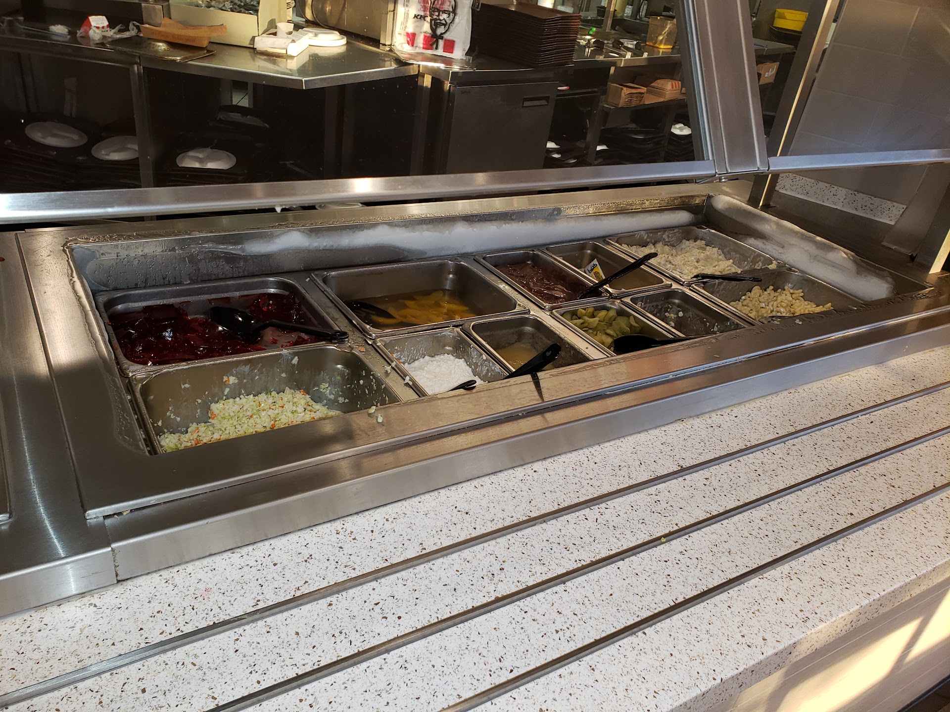 Read moreThis is my second visit to this KFC the first time I was there was in the evening and all the kids that were there we're playing running around talk to you on their cell phone their trash cans are overflowing manager had lack of control he kept trying to get kids to clean up and do their job and they kept ignoring I went there tonight March 11th at 8 at night I got the buffet I got my first plate of food I went back up to get some more mashed potatoes there wasn't any and I said something to the kid standing at the bar and I said excuse me you're out of mashed potatoes and he said to me I'm not in charge of the bar and filling it up the guy that's running it said that we're out of mashed potatoes he wasn't going to help me so I ask for the manager and the manager was very nice about it and she went and got me potatoes but the point is there is no I in team and if a customer requests something they should be willing to do it not make an excuse as to why they're not so I'm giving this restaurant one-star because of employees lack of service but I give the manager 4-stars because she was very nice and handled the situation very professionally I didn't...