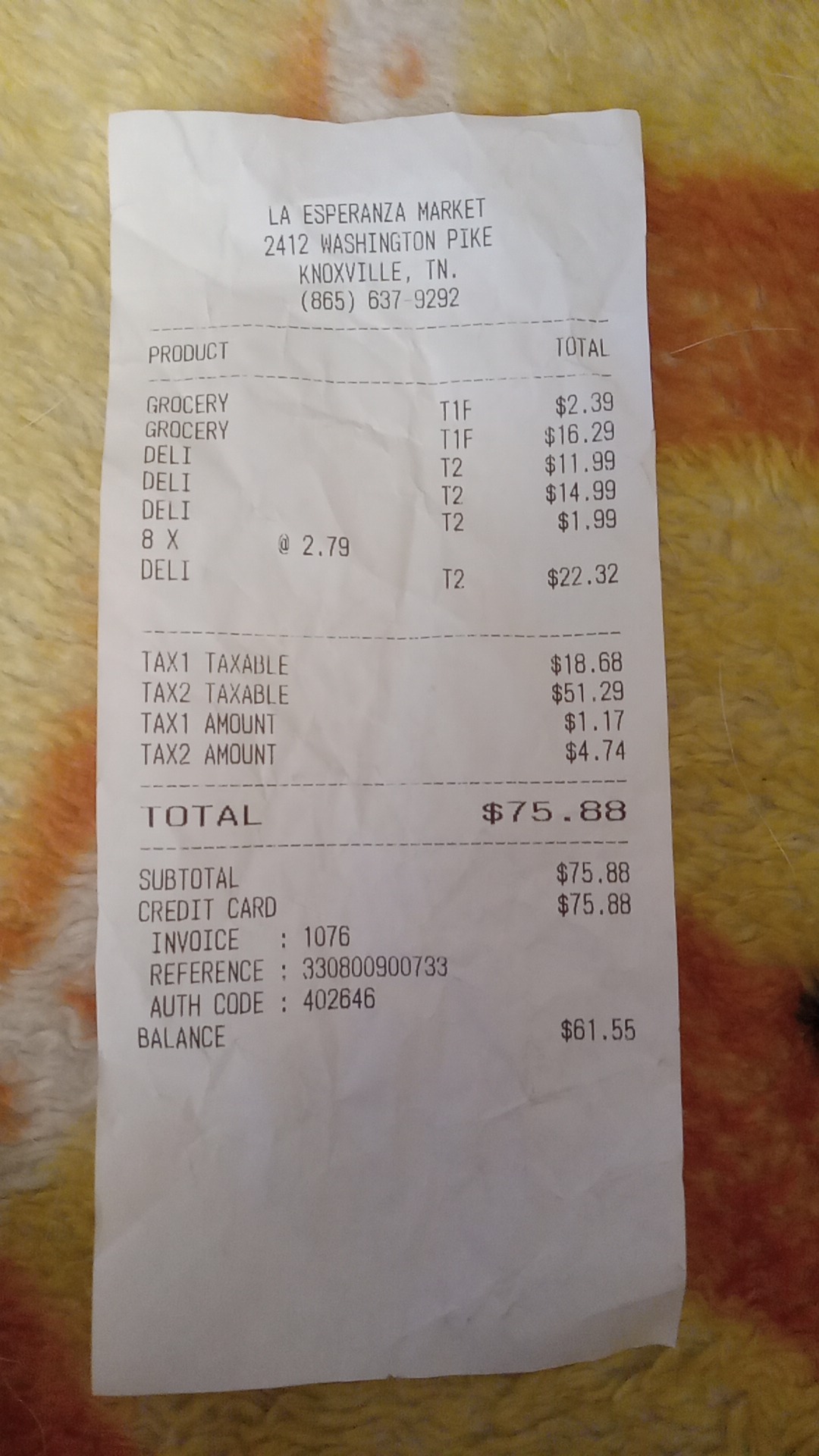 Nice well stocked store and restaurant. Good prices and they have a butcher department. _________________Update for LA Esperanza store and restaurant, Fri night I ordered a 14.99 meal and a 9.99 meal off their online menu, and 8 tacos when I got there to pick up, also bought a package of tortillas and a box of candy, now I know how much this comes to because we always get tacos and candy (The same all the time), I used my gift card from my birthday, and somehow they put a balance too, with none of the card numbers showing "like usual, my total bill is 75.88! Now the gift card I used is non-refillable and a no cash back card, so now it's not possible to get the over charge returned and all of a sudden its,"no comprende" and all the tacos were touched, nothing I would eat. And they don't understand "6th level guide" for Google. I'm wondering, DO YOU COMPRENDE ME NOW?? I'LL BE TAKING MY...