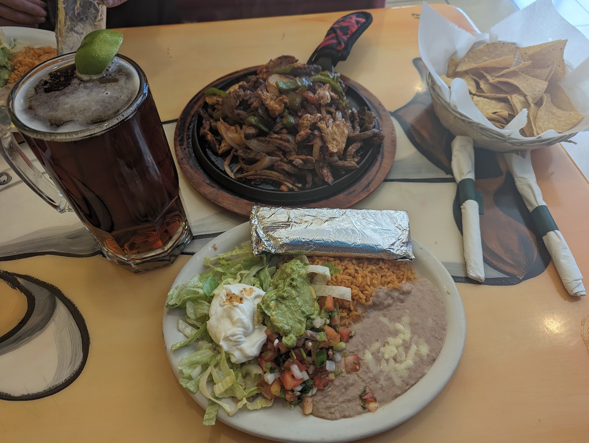 Read moreWe'll start with the food. The salsa container had huge chunks of tomato in it to the point that it splashed when pouring it. The Guacamole had hard, huge tough pieces of avocado in it (see picture). The fajitas were burnt, the meat was tough and there was next to no vegetables in it (see picture). The service was nearly non-existent and when I ordered a second beer, the waitress walked off and didn't bring it for nearly 15 minutes. We were the only ones in her section. Then when we were finished we had to actually go find someone to get our check. The service was absolutely abysmal. The atmosphere was bright and colorful, but the service and horrible food made us feel as if we were purposely being discriminated against because we were white in a Mexican restaurant. I will end by saying that I would NEVER darken the door of this establishment ever again. The only good thing I can say about this establishment is, the...