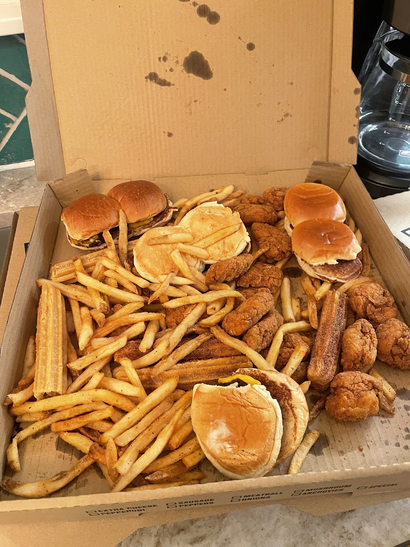 As for the plentiful âleftoverâ party food? It was all dumpedâ the fries, churros, sliders, chicken nuggetsâ into a single greasy pizza box, like the kitchen was closing up after a frat party. So many of the games were out of order, the bathrooms were genuinely filthy and understocked, and the new Gel Blaster Nexus âpaintball-laser tagâ experience left visible and painful welts all over my daughter and her friends.