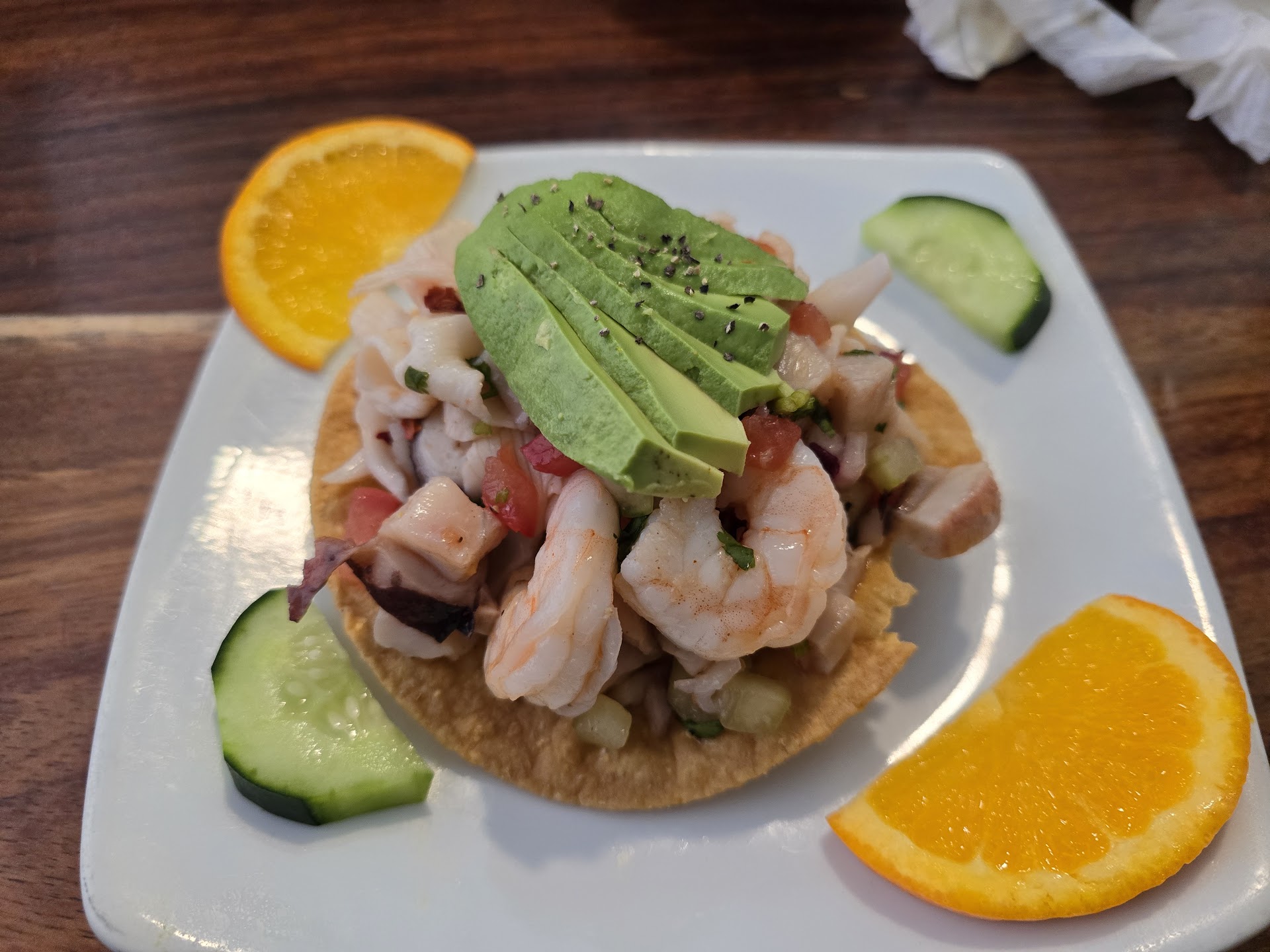 Read moreMy mom and I each got the shrimp fajitas from the TexMex menu section. Most of the menu appeared to be for bigger parties of hungry folks. Not finding many smaller plate entrees from browsing that menu. We managed since I do speak a little bit of Spanish. They had a karaoke performer roaming around for entertainment on Saturday night. I admit the shrimp fajitas are as good as available from a bigger city. Excellent presentation. They also offer seafood Ceviche tostada in place of the regular chips n salsa as a starter while you browse the menu. My menu had some greasy residue. My mom wanted hot water, but they only had Ice water. The waitress gave us the bill, but then was gone from our aisle for a long time while we waited to get the credit card to her. My mom saw other customers pay up front, to we decided to pay there instead of waiting for the waitress to come back. English / Spanish , and the loud music made it a bit harder to get the right service from our waitress, but hand signals and pointing at pictures on the menu got us through the dinner event. A gentleman behind the cashier did get us a bag for our take home box before I figured out who to ask. The staff appear to be alert for visual queues to help...