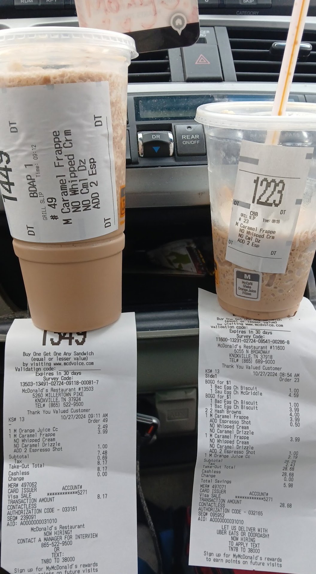 Read moreUnderstandably they were extremely busy, I did not appreciate being treated so rudely. I had asked for my receipt that I didn't get from the kiosk and was told by who I can only guess was a team leader that, and I quote, they didn't have time for that, it would take too long to search on the register for it. I was informed they were very busy and I needed to leave and then was told twice when I requested my receipt again have a good day bye you can leave. I did hear the person who went around to the drive-through say something about me which I will not print here. I went to my car and then on second thought I went back in and requested the main office number at which point a female individual who I guess was actual management asked what was wrong. The prior individual made the comment that I was just wanting to cause trouble. I spoke up for myself and told her I just simply wanted my receipt. She promptly came to the register and apologized and found my receipt. I probably wouldn't have said anything here, but for being insulted and dismissed as I was already late to be somewhere. My food was not cooked thoroughly but I was driving down the interstate when I discovered this. Will NOT be back. I will drive out of my way to another location or go...