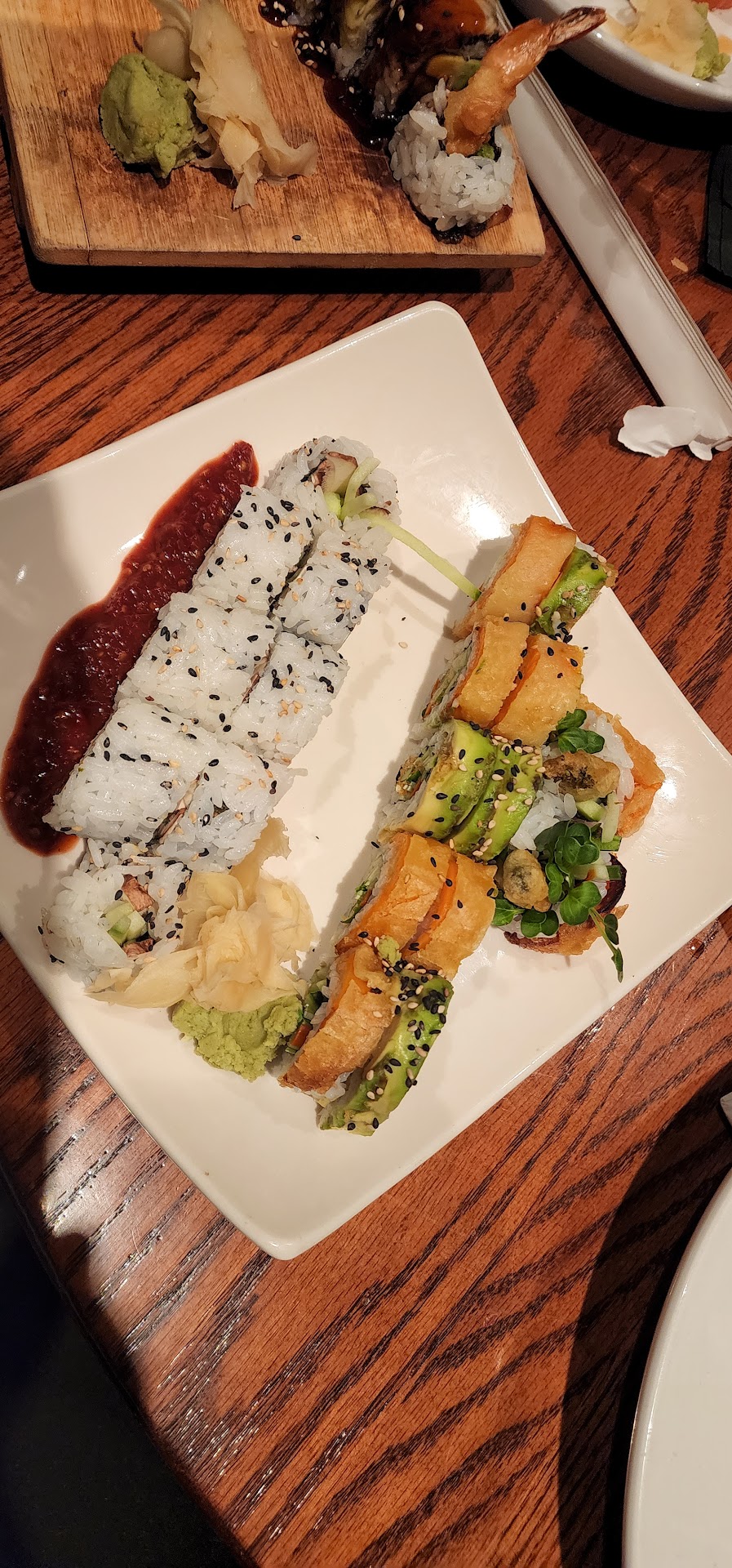 Read moreWe came from the coast. You can either hate the outsider, or appreciate this perspective. This place was ludicrously expensive for the quality. We ordered one salmon make roll, one crazy tuna, a tofu bowl, and a kid's "fish and chips." We got a salmon roll that wasn't served with sticky rice and poorly presented, for a higher menu price than we are used to paying in a region where wages are 30% higher than locally. The kid's "fish and chips," came as tempura breaded shrimp and potato chips. The tempura breaded shrimp, that we did not order, was not as good as the frozen bags we get at Costco. The price point was 20x that frozen Costco bag. The tofu bowl was so unappetizing that my wife left over half uneaten, and she is not a finicky eater; raised by warzone survivors accustomed to as means of survival, not enjoyment. The crazy tuna roll was billed as being topped with seared Ahi tuna and coming as 8 pieces. The pieces were half the size the octogenarian first generation Japanese immigrants prepare, for HALF the price, where we came from. There were 3 tiny pieces of tuna on top of the roll. About 75% was avocado that had begun to brown. Again, the rice was not sticky. The chips were actually potato chips, not traditional fries. Is that a gimmick that people enjoy? We paid 70$ for this meal. It was the most expensive per calorie we have eaten in Farragut. My wife, whom I've never heard say the following due to the enjoyment of letting go of the obligation to cook for our kids every day, stated after abruptly putting her chopsticks down, "Let's just go home, I can do this better at home."