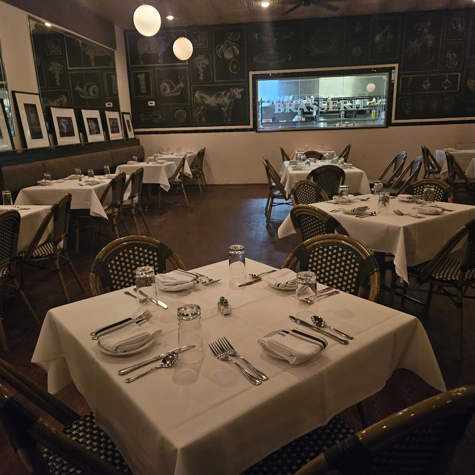 Read moreIt's been since before covid outbreak that I've dined there. It's been a long time coming.i will say I've had experiences walking into a joint only to get attitude from staff. I kid you not, one place the server actually stated, what do you want to order? I'd like to keep the place clean. We are about to close. Has this happened to you? It's shocking customer service. Well, due to work, I walked in here about 39min prior to closing and i half expected to be shot down in some fashion. I was not disappointed when my party was welcomed and ssated and served. Never felt rushed, in fact I felt that I was more pushy to come along quicker. Ordered shared appetizers, escargot and raw oysters from Alabama! Who knew that the Gulf Coast had oysters had any seat at the table. They were decent sized and slight brine, they were terrific. Back to the review. Out server, I can't recall her name but I will update if I get it soon enough. She was knowledgeable of the menu items, the wine list, and she got on well with my dinner guests. At the end, I'm not sure what time, but it seemed most of the staff stayed. We left and were in the parking lot chatting when two guys that had nothing to do with our table from what I could tell brought out our forgotten doggie bag. The meals were off an elevated dining menu, not your average dishes to be had, low country french cuisine and prepared very well. For end of night meals, they came out as fresh as if we were first arrivals early in the night. As for atmosphere, the remaining staff put off good vibes, it was like the team were family, just good vibes. Service great, .meals great, and atmosphere perfect. I highly recommend the Brasserie. Do yourself a fsvor or someone else and introduce them to this gem of a restaurant. Knoxville is...